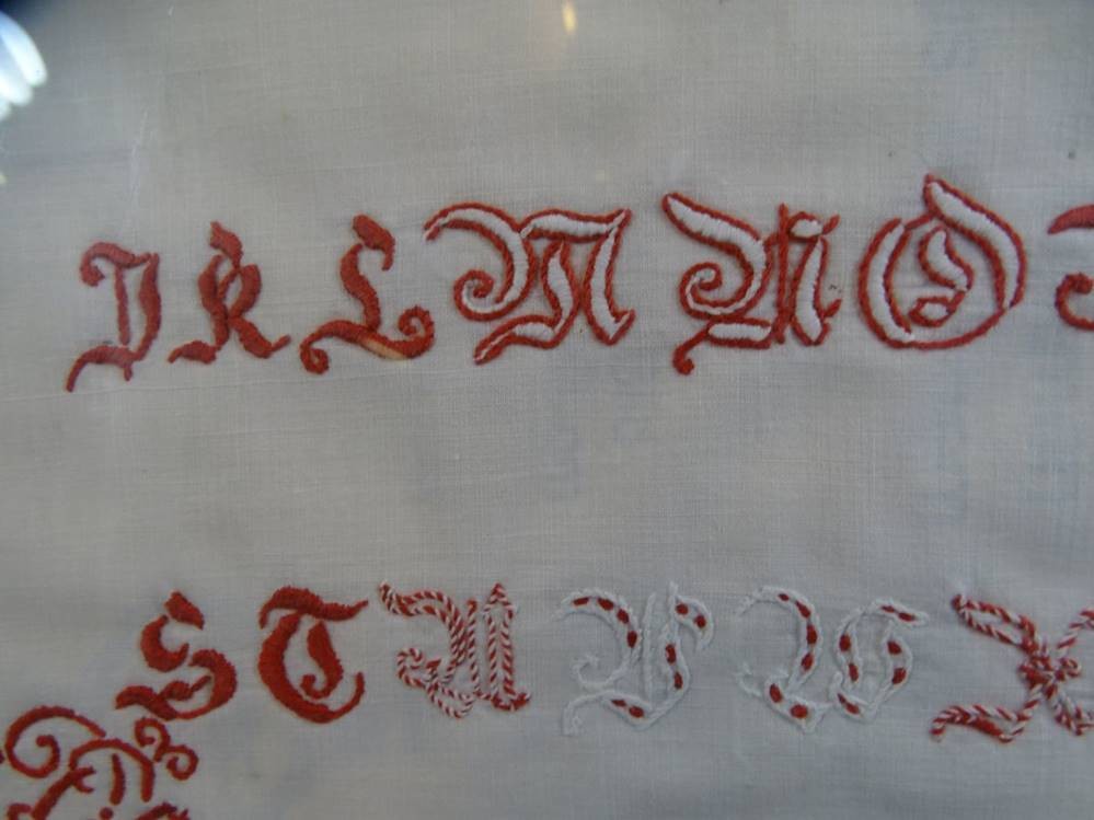 Stickmustertuch, gerahmt/Glas, RG 26x31 cm [1]