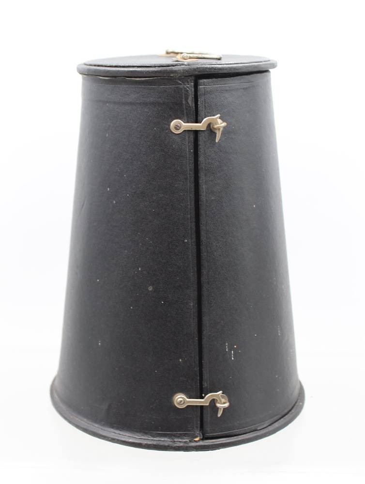 Tragekoffer wohl für Kelch oder Silbergefäss, um 1900, ca. H-24cm, unterer D-18cm [1]