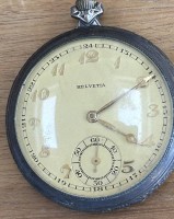 Silber-800- Taschenuhr "Helvetia", Werk läuft, ungeputzt, D-5 cm, Kronenring fehlt