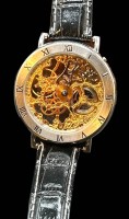 gr. Automatic Skelettuhr, beidseitig Glas, Lederband, wohl ungetragen, Werk läuft, D-5 cm