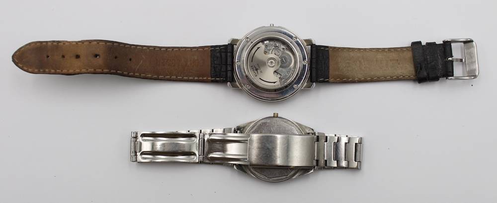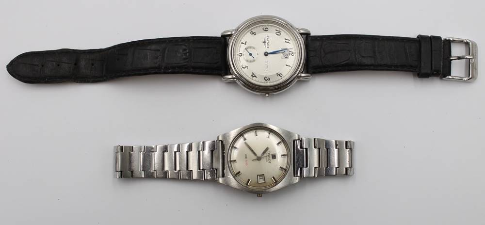 2x div. Armbanduhren, Elysee Automatik (läuft an) und Tissot PR 516 (Werk steht), Krone fehlt jeweils, Tragespuren, ca. D-3,8cm