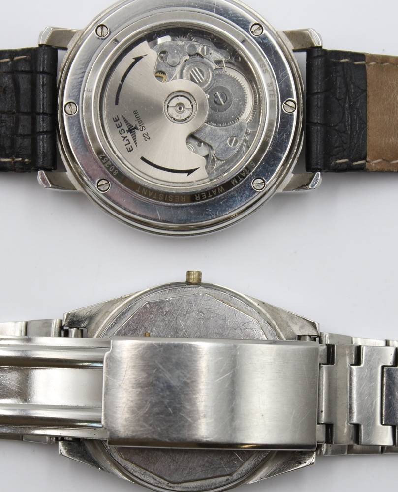 2x div. Armbanduhren, Elysee Automatik (läuft an) und Tissot PR 516 (Werk steht), Krone fehlt jeweils, Tragespuren, ca. D-3,8cm [1]