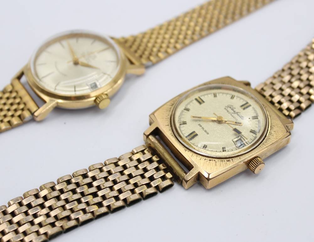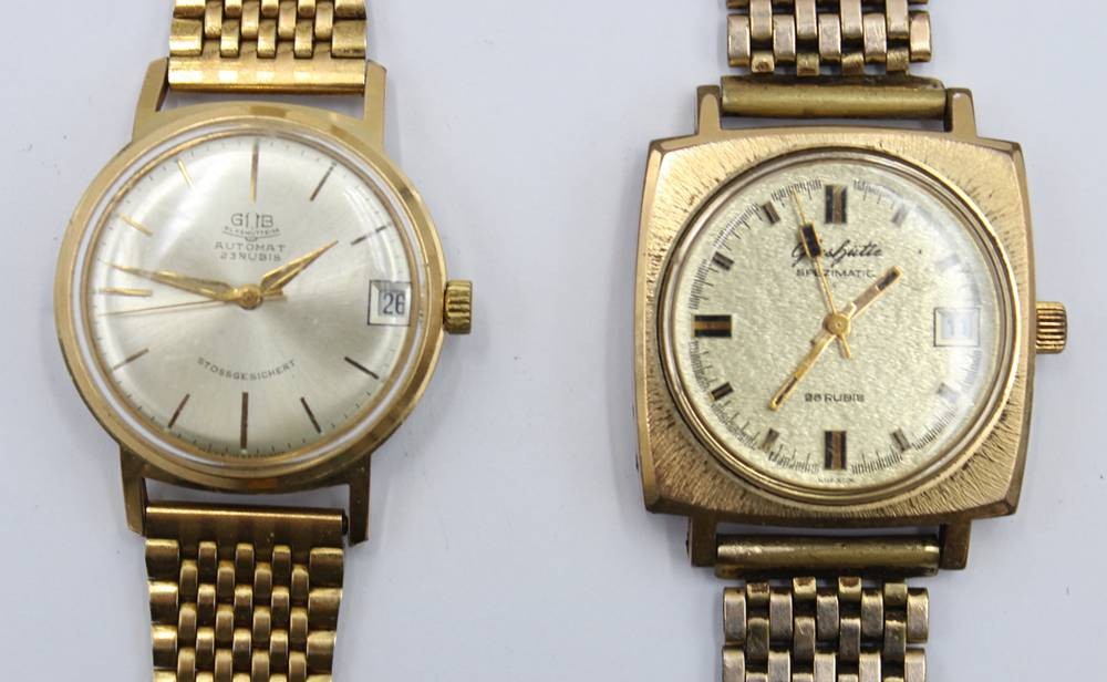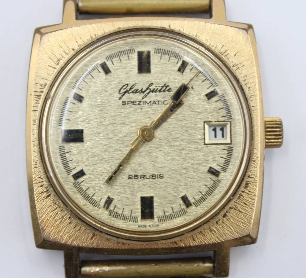 2x div. Vintage-Armbanduhren, Glashütte, 1x Spezimaticm Werke laufen, Tragespuren [1]
