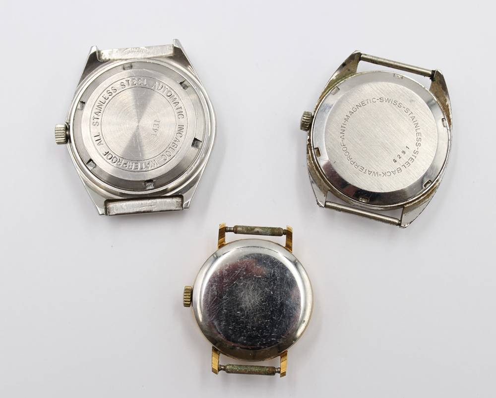 3x div. Armbanduhren, Tevo, Automatic u. Prim, alle Werk laufen an, ca. D-3,5cm [1]