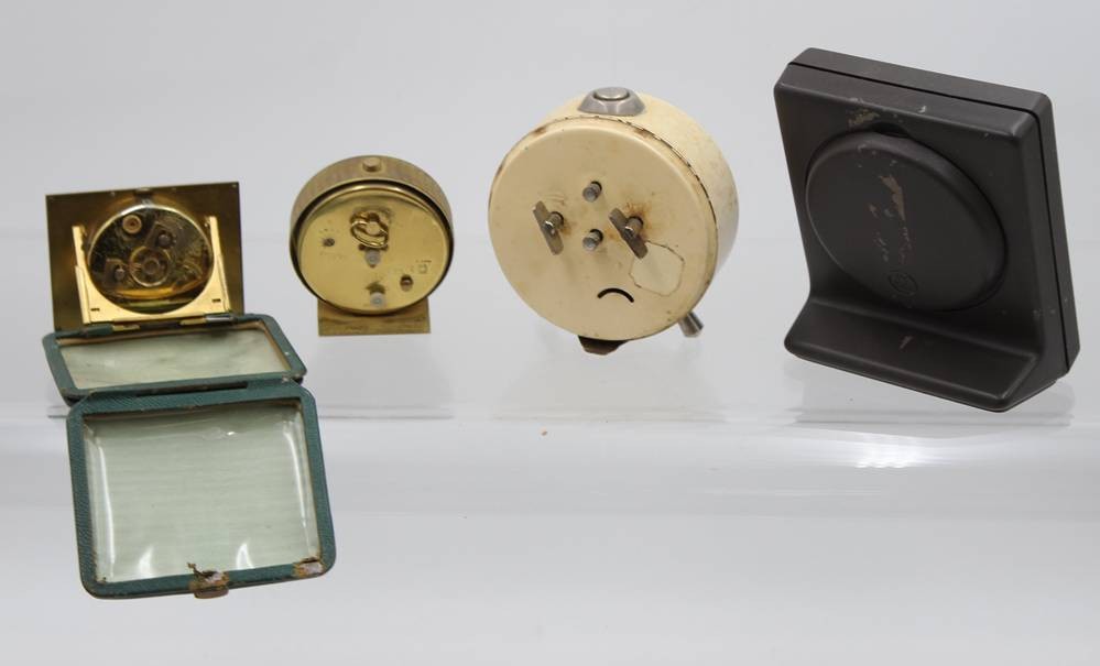 4x div. Wecker, untersch. Epochen, 3x mechanisch (2x Werke laufen), ca. H-12cm [1]