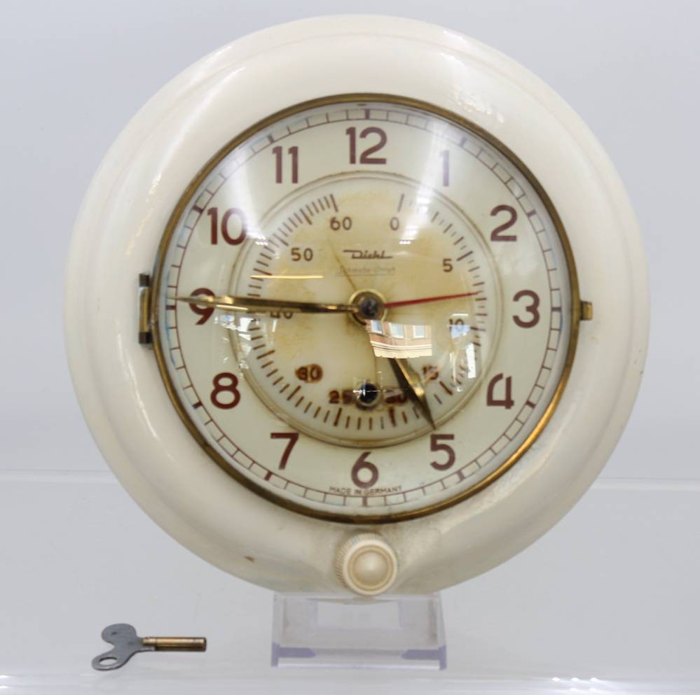 antike Küchenuhr der Firma Diehl, 50&60er Jahre, Werk läuft an, Ziffernblatt mit Rissen, D-24cm [1]