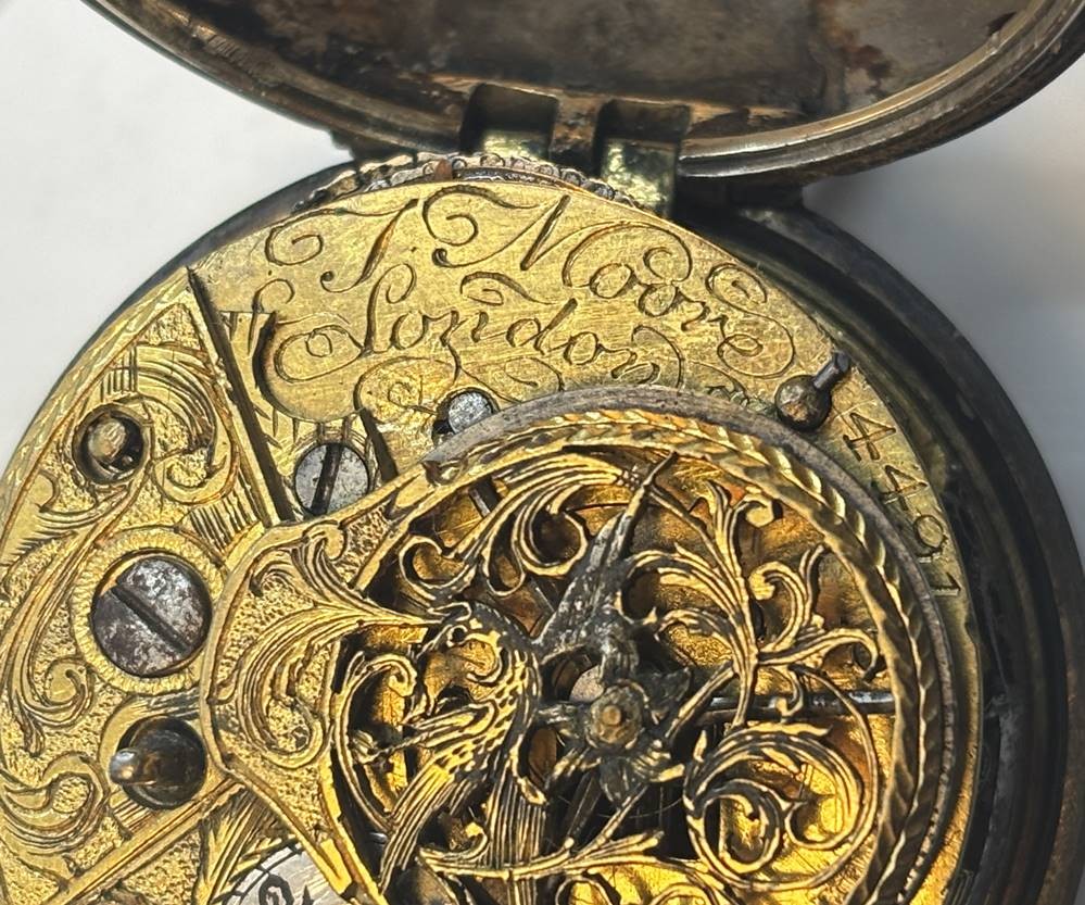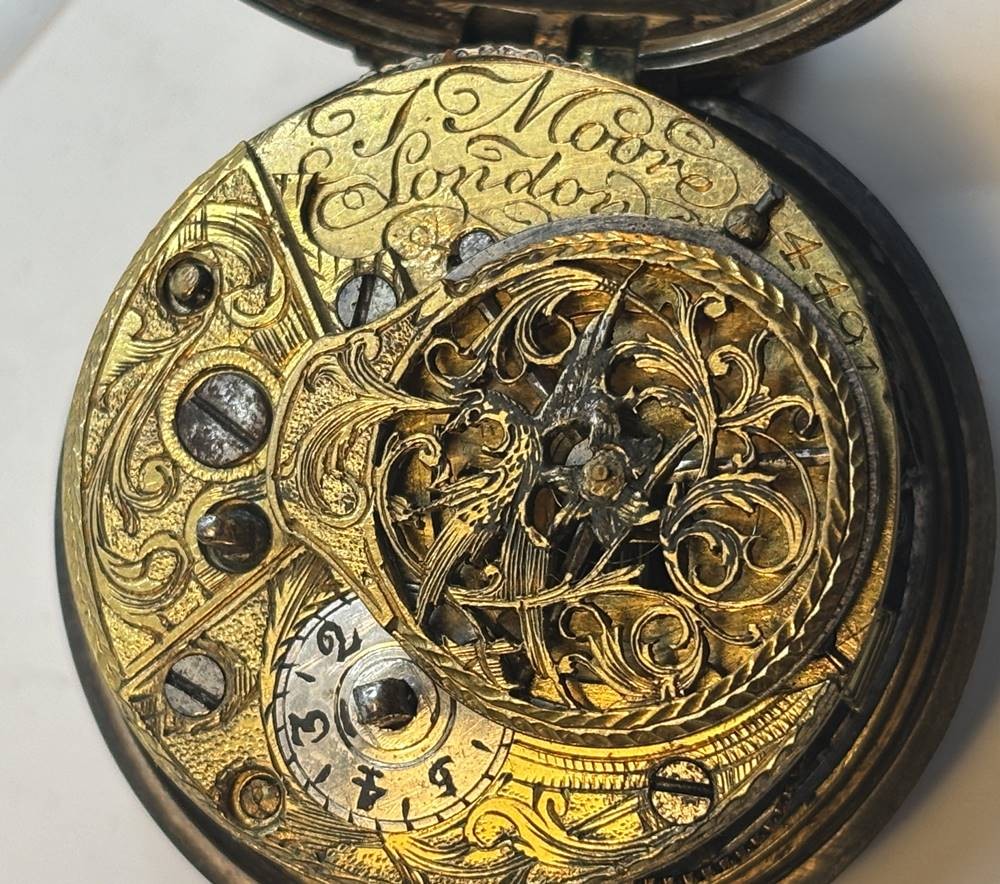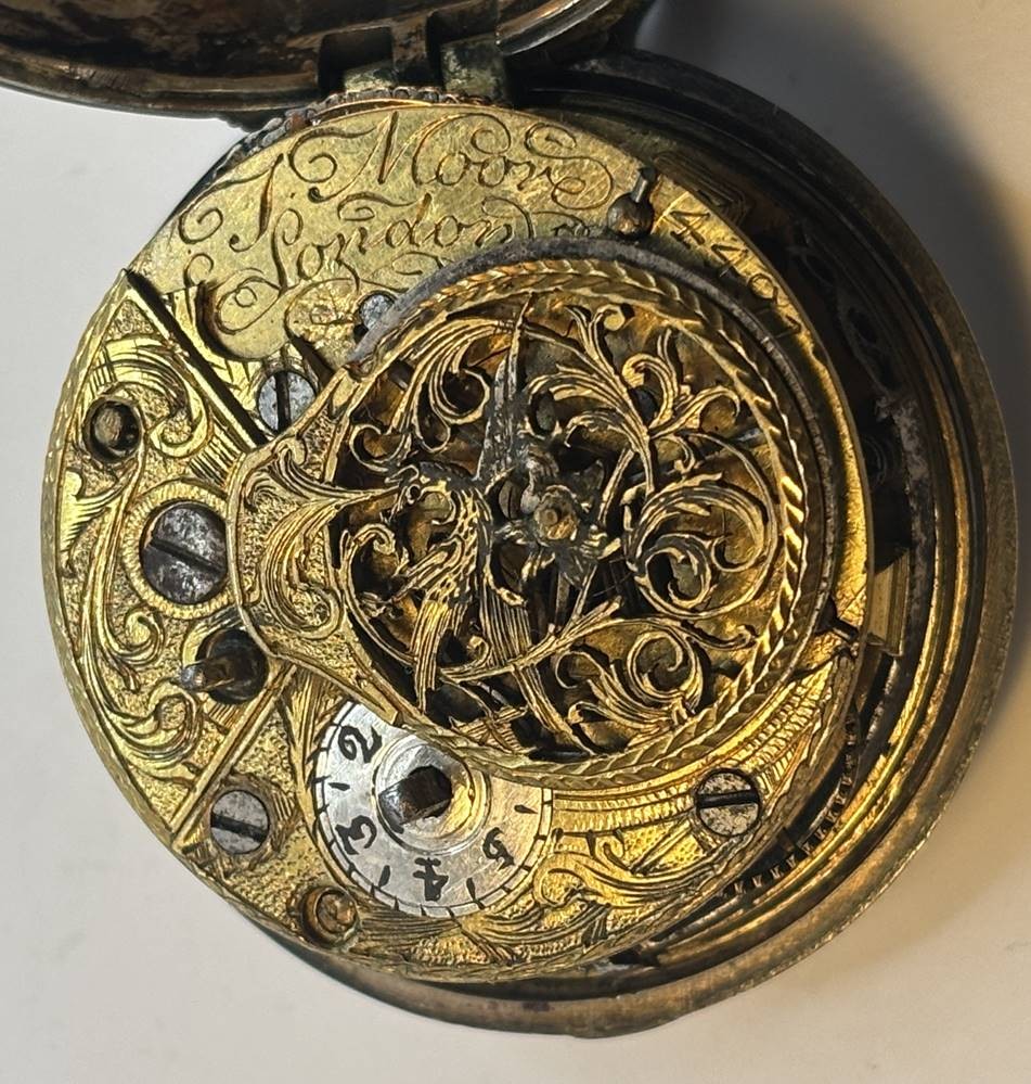 antike Silber-Spindel-Taschenuhr, auf Platine sign. J. Moore, London, um 1760, sehr gut erhalten, D-4,3 cm [1]