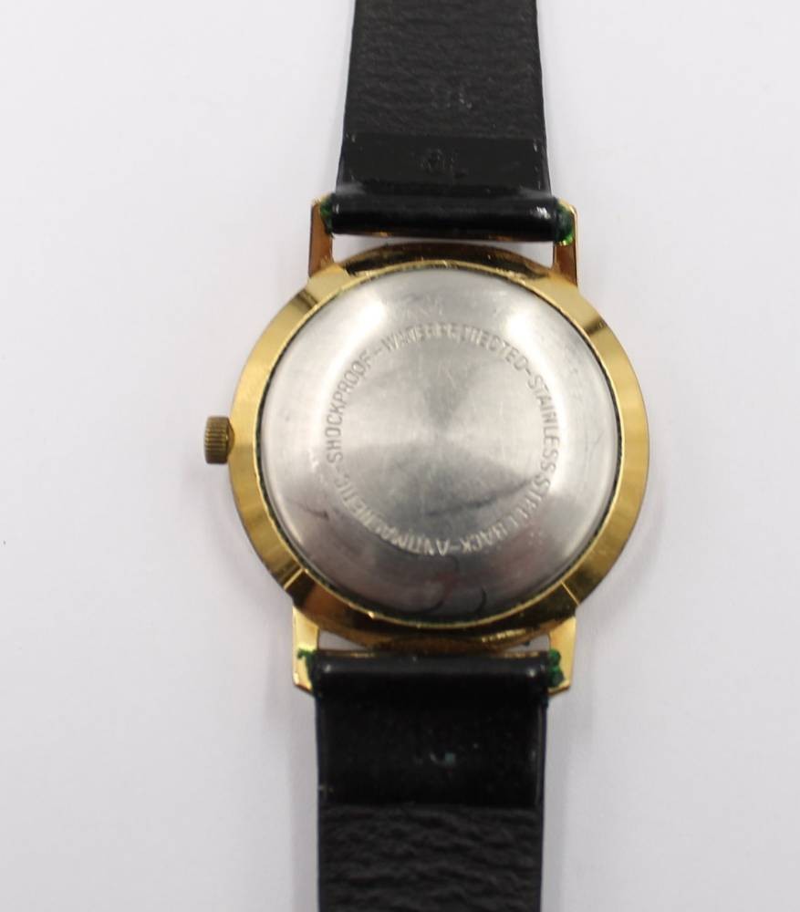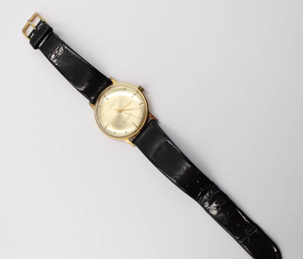 Armbanduhr, Kienzle Automatic, 25 jewels, Werk läuft, schwarzes Lederband, ca. D-3,5cm [1]