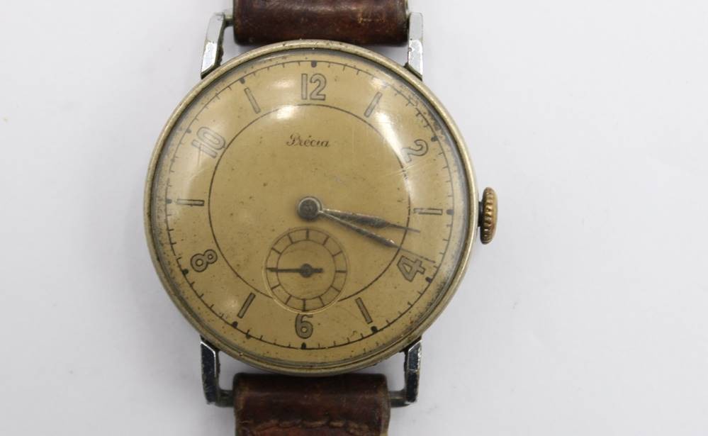 Armbanduhr, Precia, wohl 20/30er Jahre, Handaufzug, Werk läuft, Alters-u. Tragespuren, D-3,3cm [1]