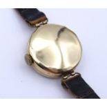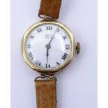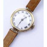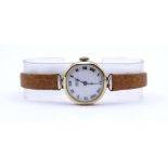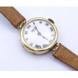Armbanduhr "Rolex" Mod. Rolco, GG Gehäuse 375/000, mechanisch, Werk läuft für einige Minuten, D. 25,3mm, Dellen am Deckel