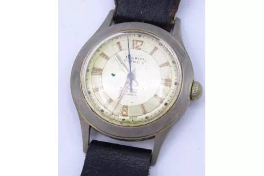 Armbanduhr "Tegrov", mechanisch, Werk läuft, starke Alters- und Gebrauchsspuren, ca. D-3cm [1]