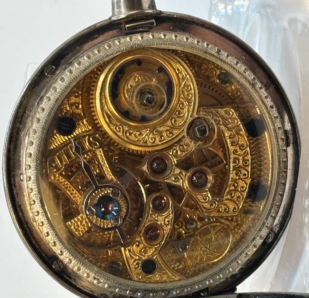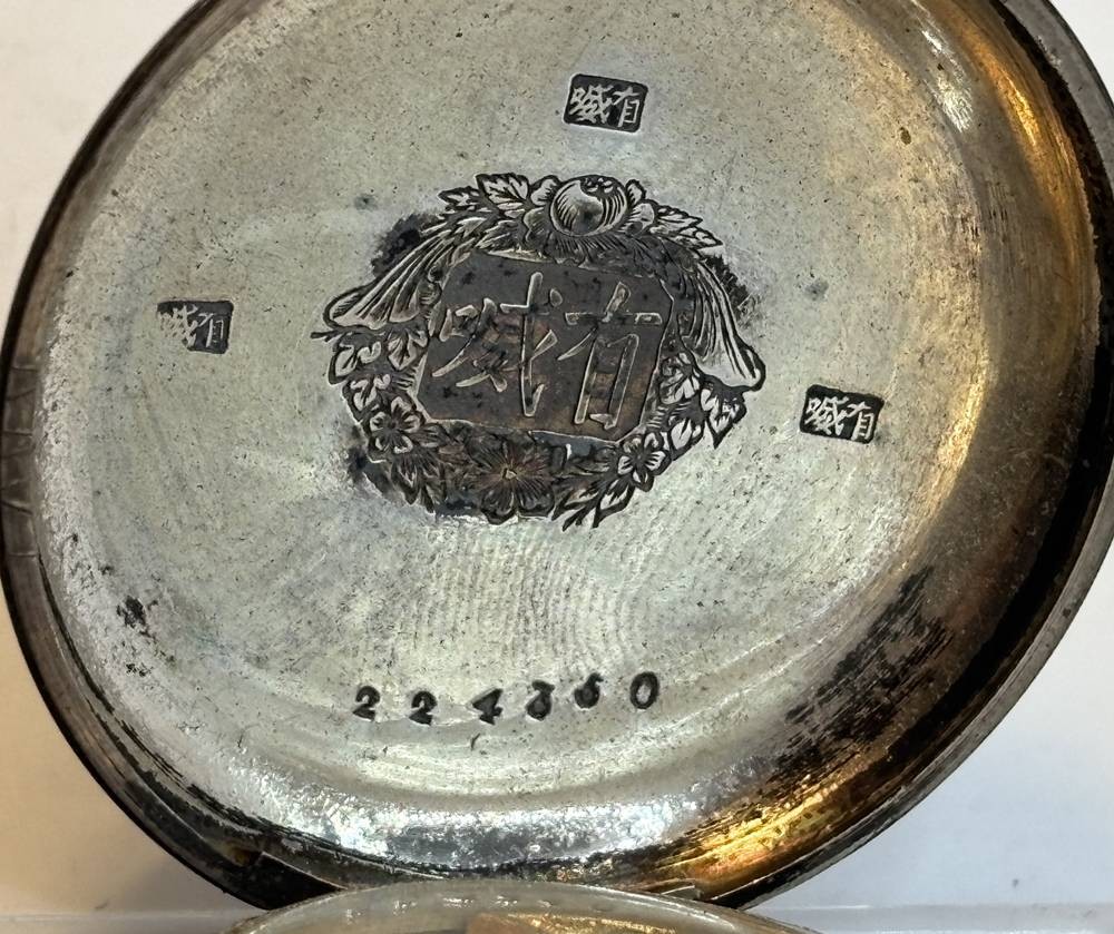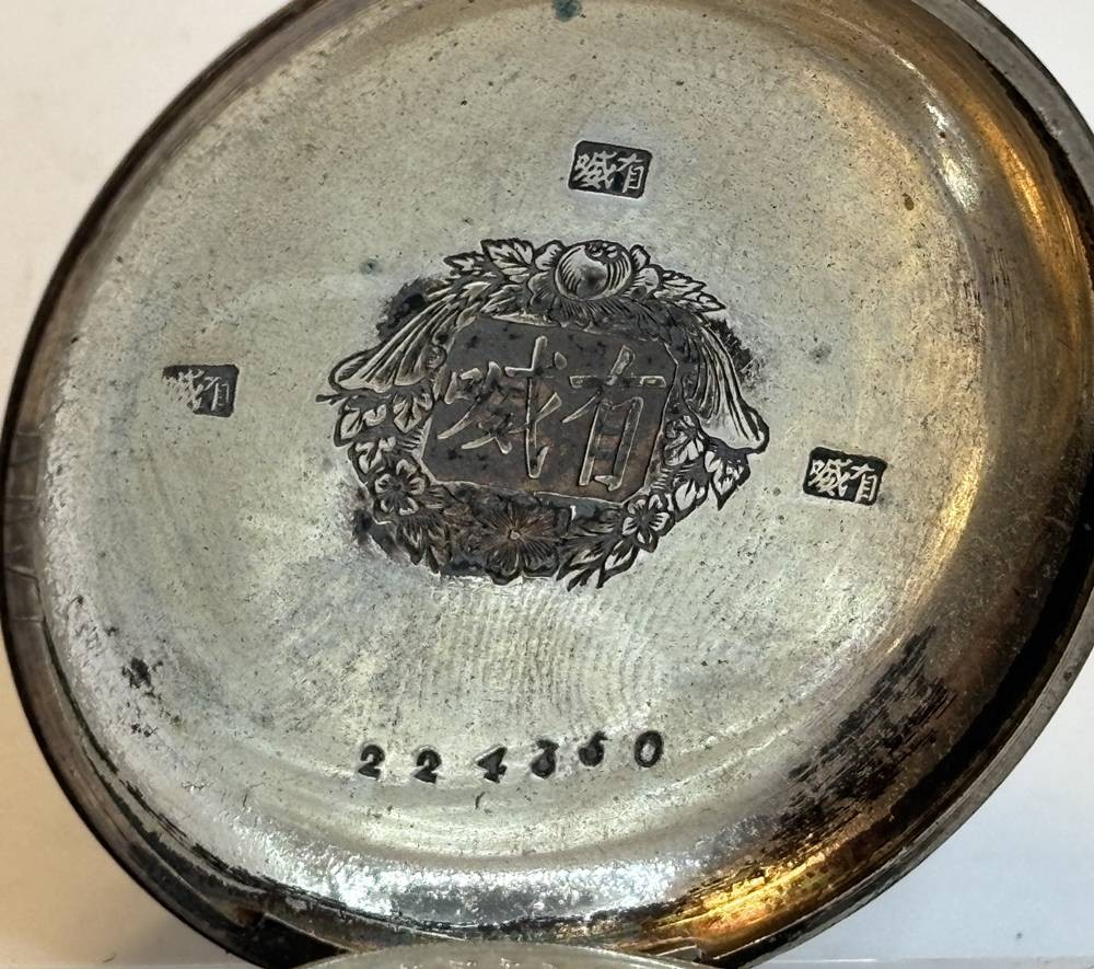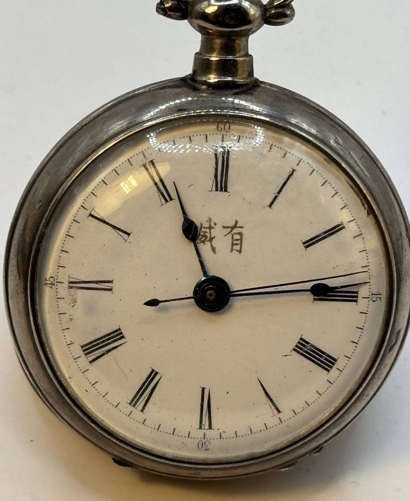 Bovet Fleurier Taschenuhr für den chinesischen Markt, hergestellt in der Schweiz um das Jahr 1870. Silbergehäuse, Uhrwerk sogen. "chines. Kaliber" reich verziert, D-4 cm [1]