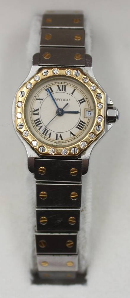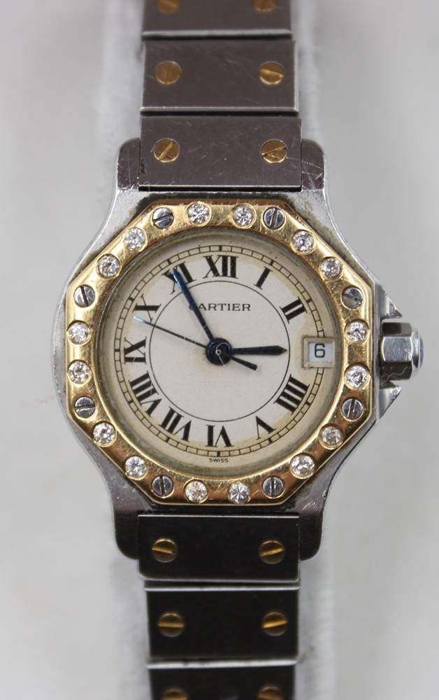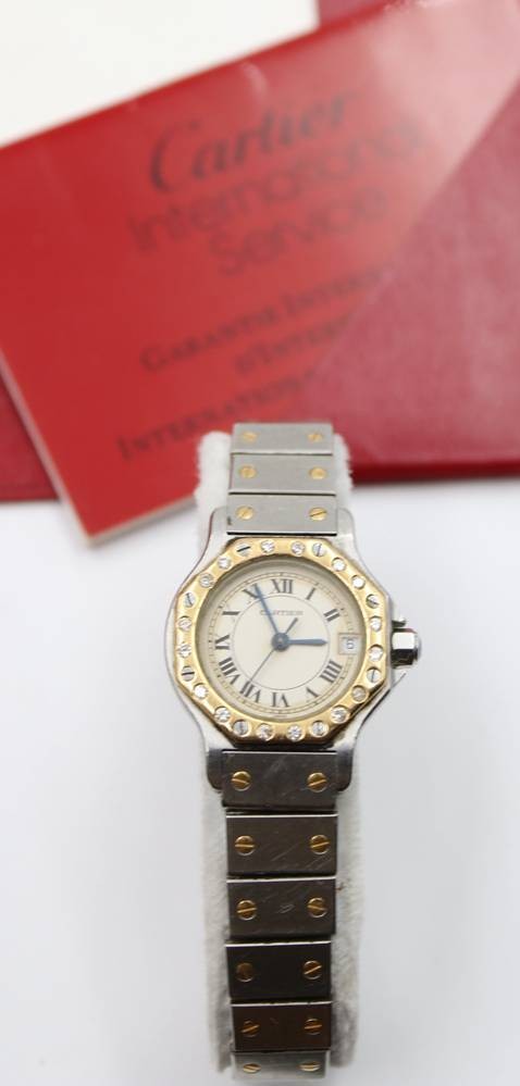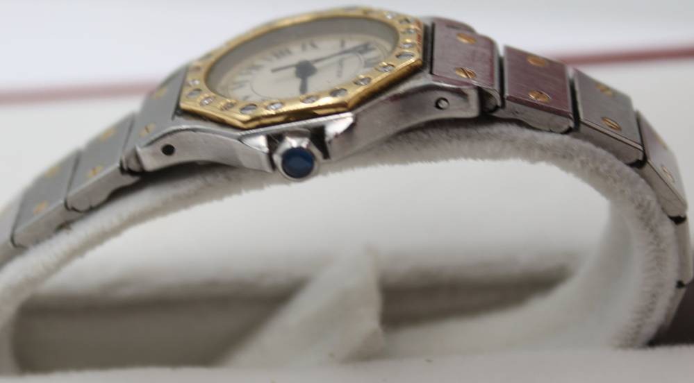 Cartier Santos OCTAGON 25mm Quartz 2 Tone, 0.40TCW Diamond , Band Stahl/Gold-750-, Ref. 187903, Kaufdatum 1993, Werk läuft, mit Box und Papiere [1]
