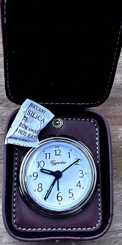 Cyprea Reisewecker, neu in OVP, Ledergehäuse? [1]