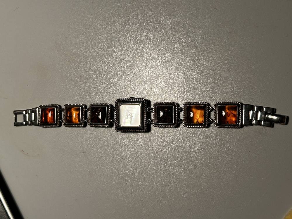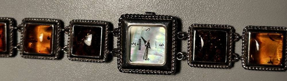 Damenarmbanduhr "Rivage" Quartz, Silber-925- Band mit Bernsteinen, zus. 51,4 gr., L-ca. 19 cm, Werk nicht geprüft [1]