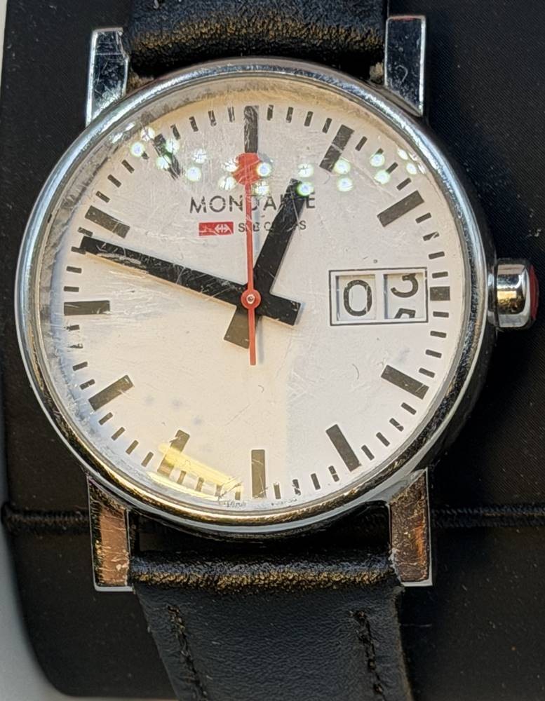 DAU ARMBANDUHR Mondaine, Schweizerische Bundesbahnen, Quarz. in OVP , Glas mit Kratzer [1]