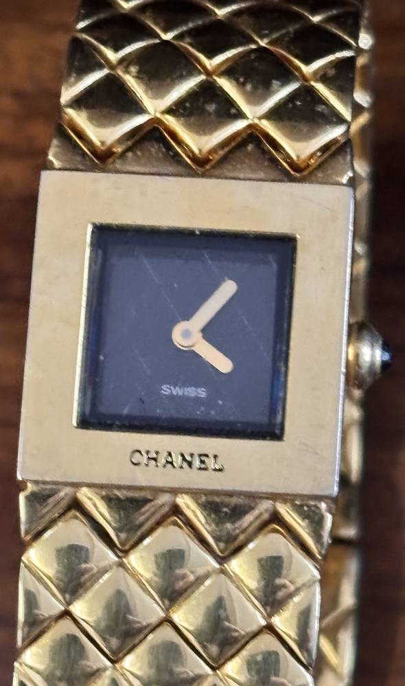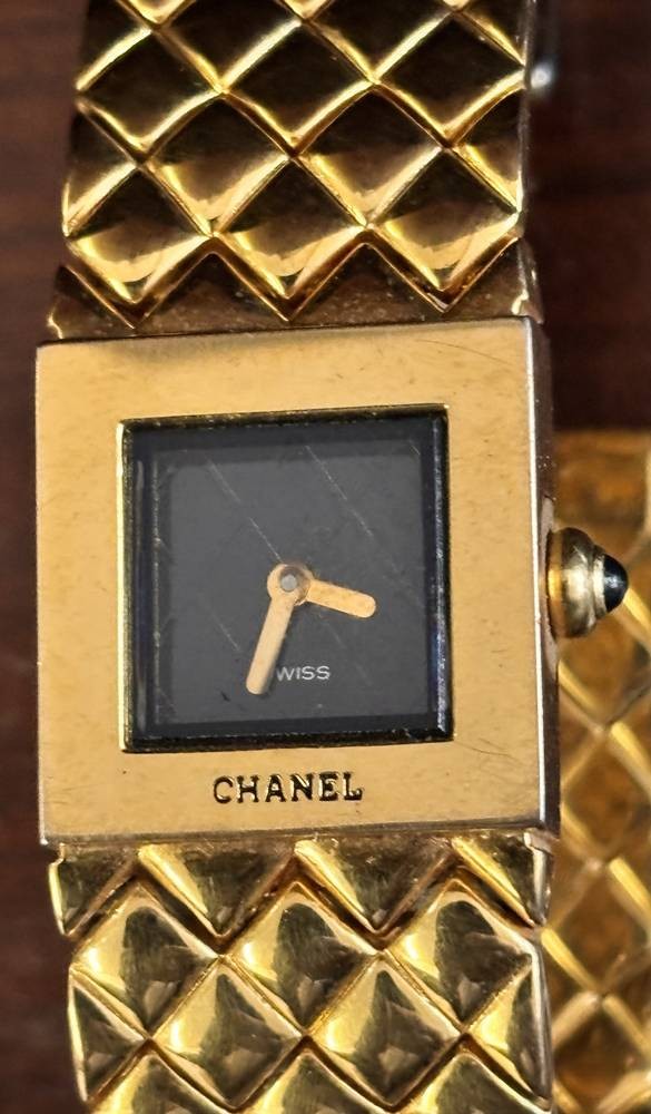 DAU Chanel Matelassé , vergoldet, orig. Band, Quartz, Saphir als Aufzugskrone [1]
