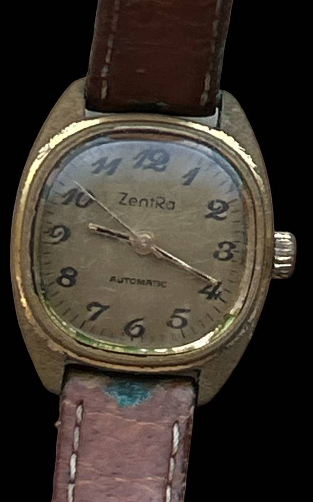 DAU "Zentra" automatic 290-210 16, Lederband, Werk läuft, ca. D-2cm, Tragespuren [1]