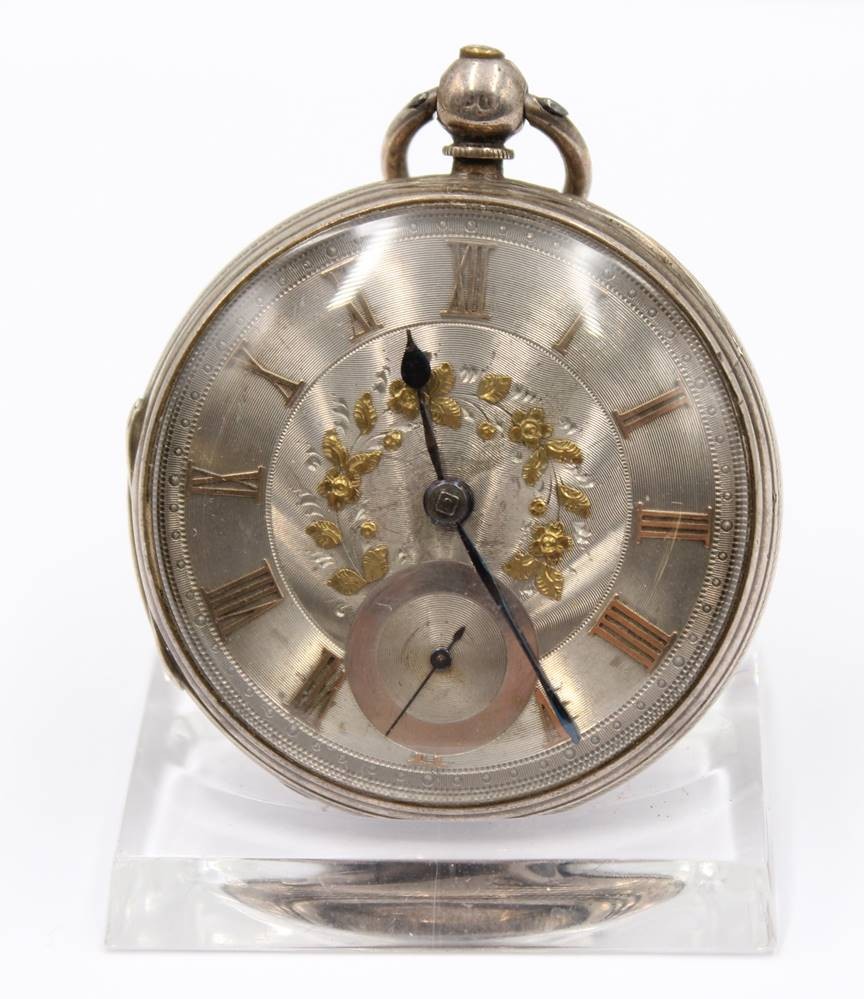 engl. Spindel-Taschenuhr um 1850, Sterling, Schlüsselwerk läuft, ca. D-4,5cm