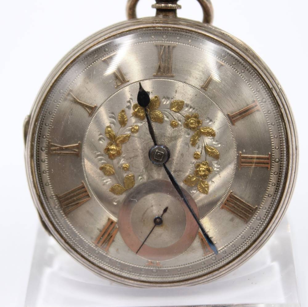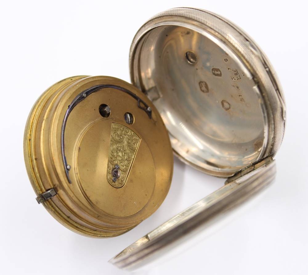 engl. Spindel-Taschenuhr um 1850, Sterling, Schlüsselwerk läuft, ca. D-4,5cm [1]