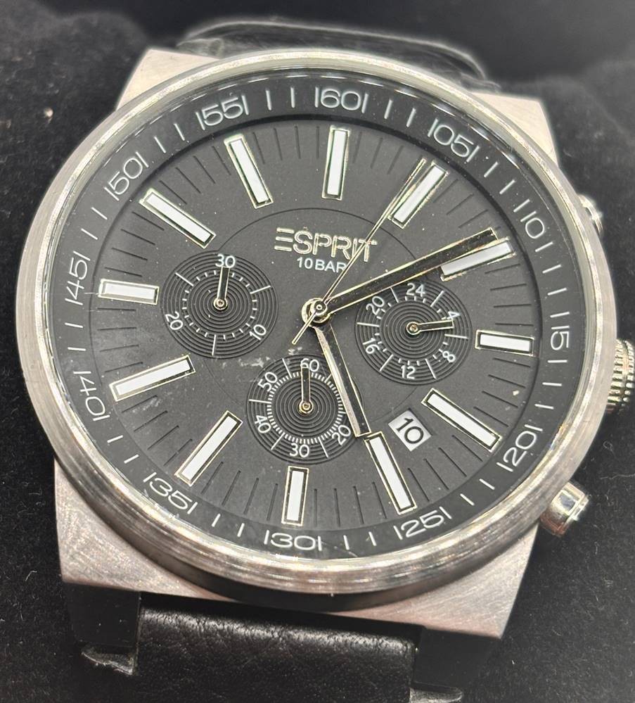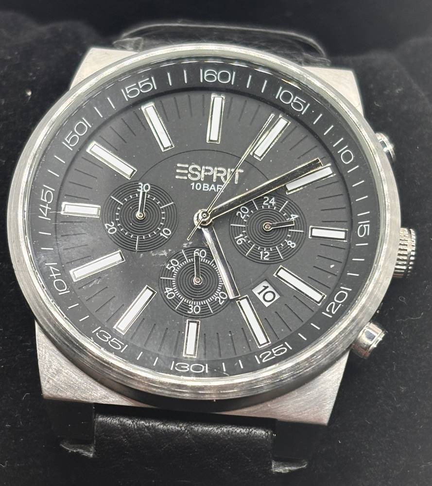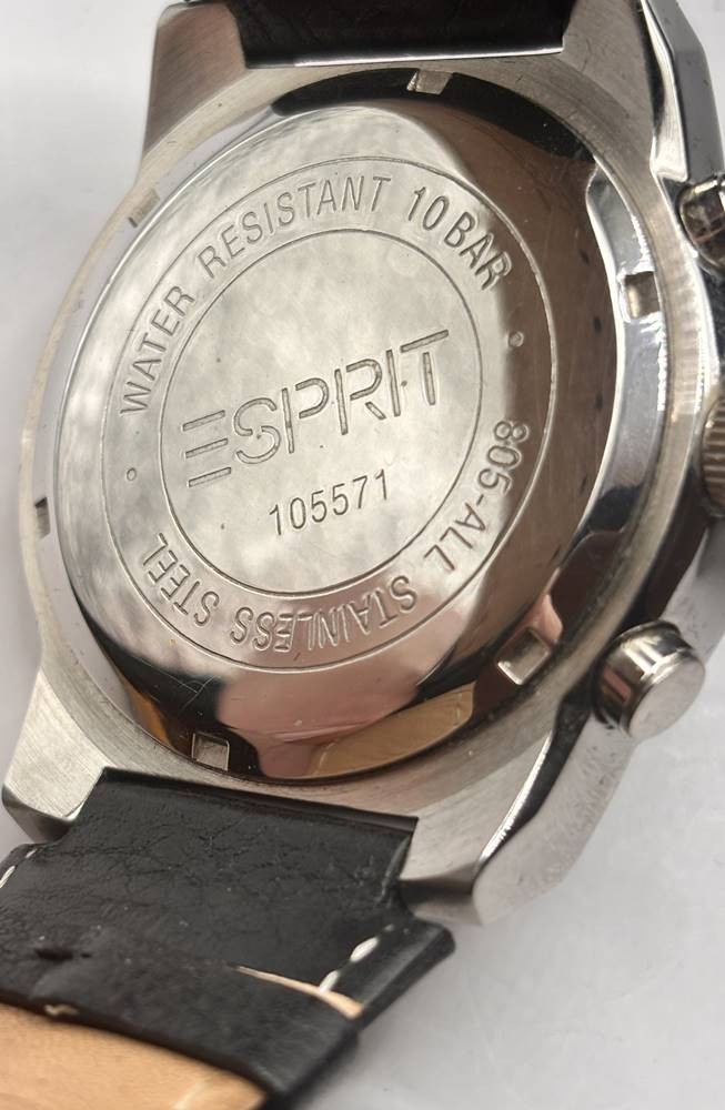 Esprit Herren-Armbanduhr Chronograph Quarz, Lederband, 105571, neuwertig mit Papiere in Blechdose, Werk nicht geprüft [1]
