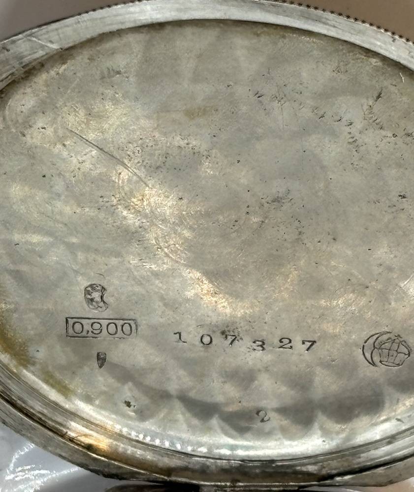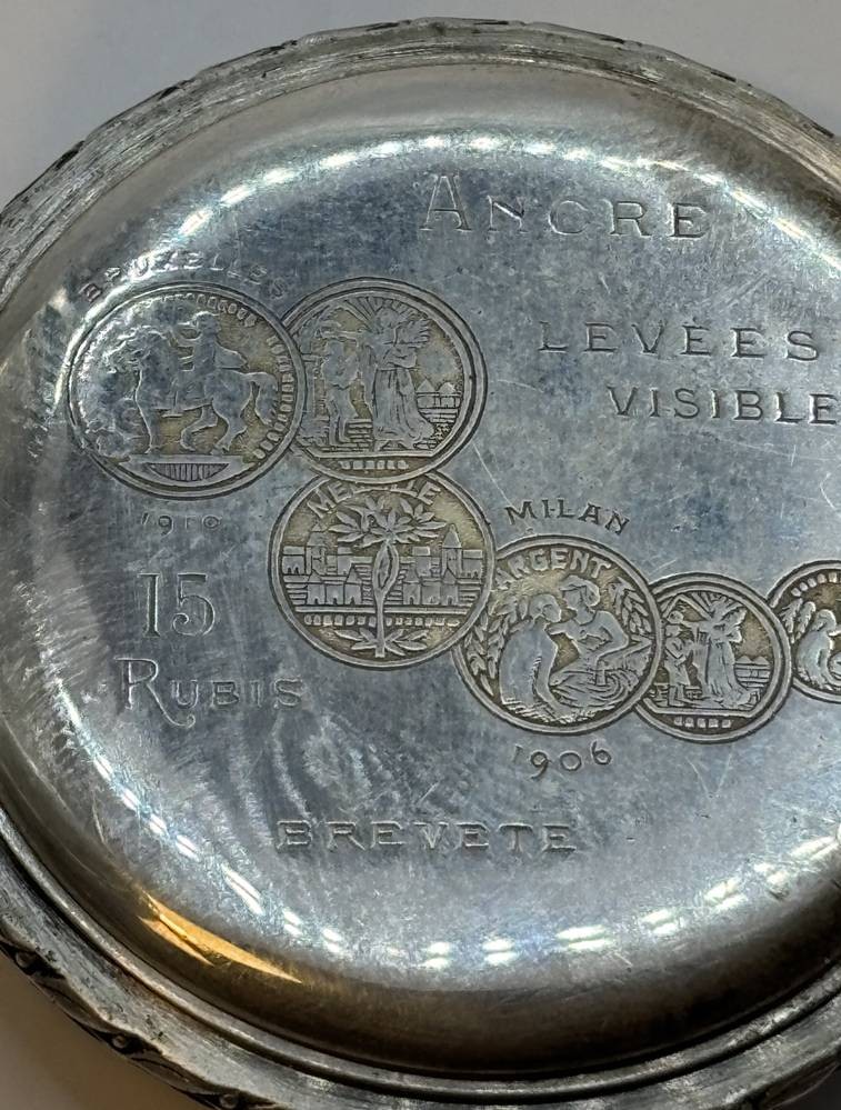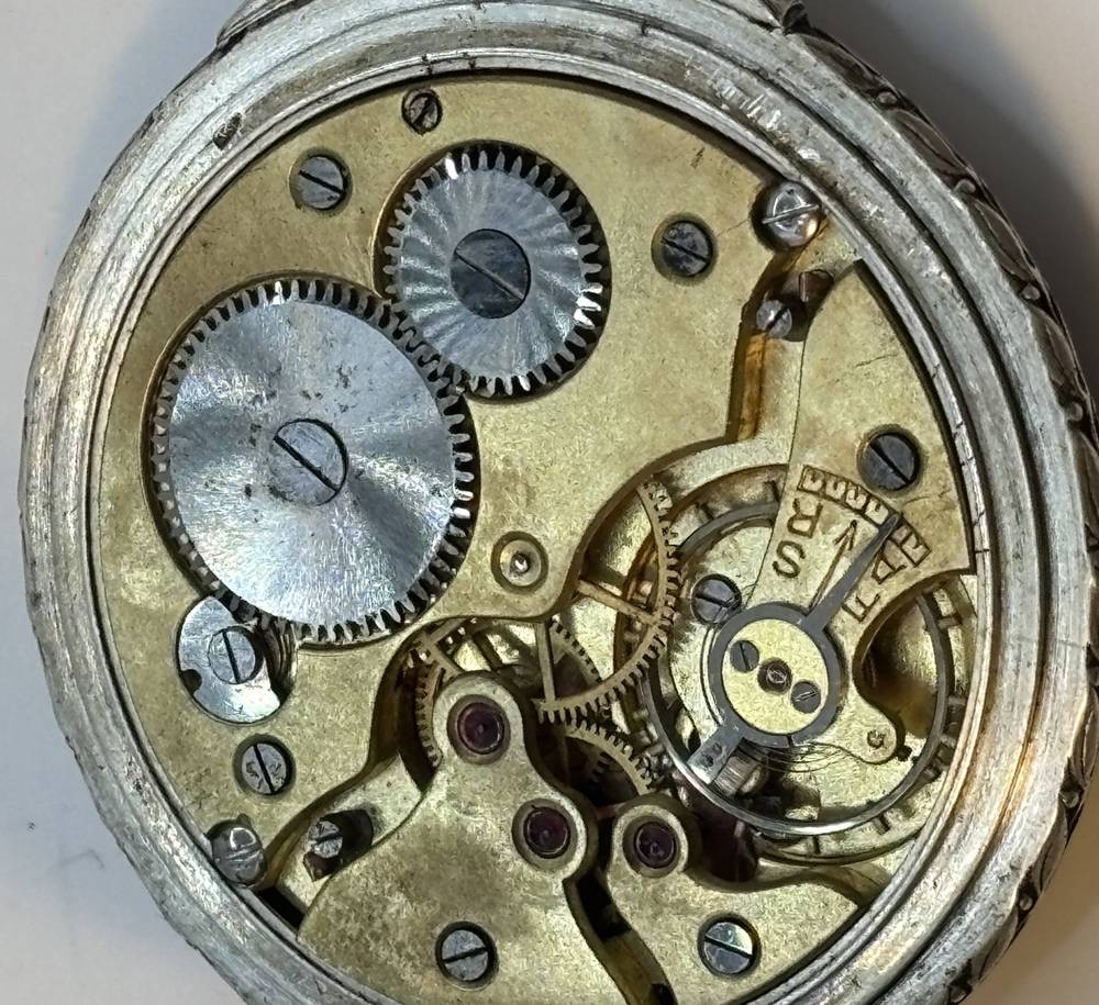 flache mechan. HTU in Silbergehäuse-900-, 2 Deckel Silber, 15 RubisWerk läuft, D-4,5 cm [1]