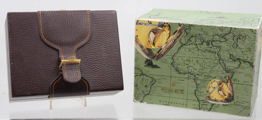 gr. Rolex Box mit Umkarton, Gebrauchsspuren, H-13 cm, 16x21,5 cm [1]