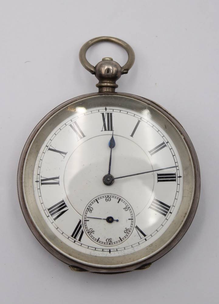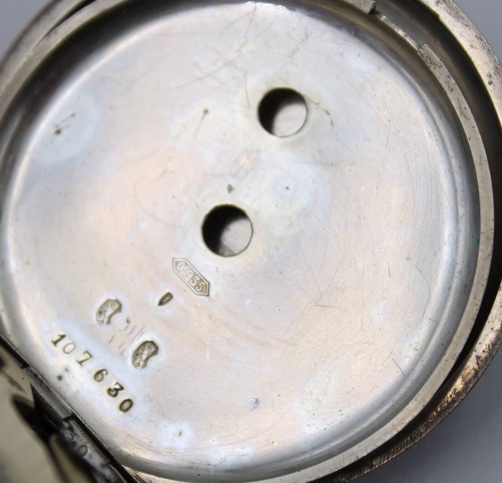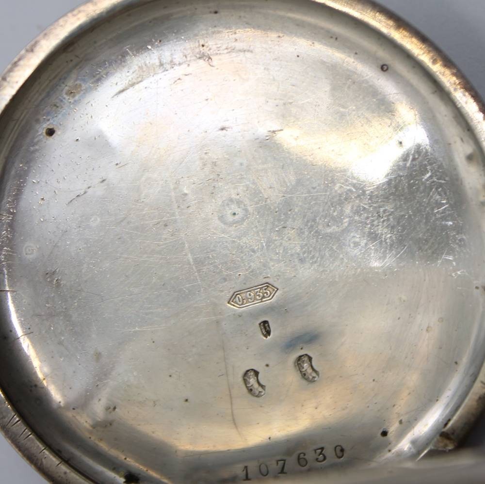 gr. Taschenuhr um 1900, 935er Silbergehäuse, Schlüsselwerk läuft, ca. D-5,2cm [1]