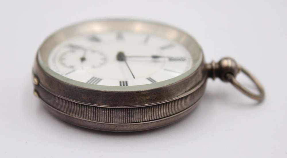 gr. Taschenuhr um 1900, 935er Silbergehäuse, Schlüsselwerk läuft, ca. D-5,2cm