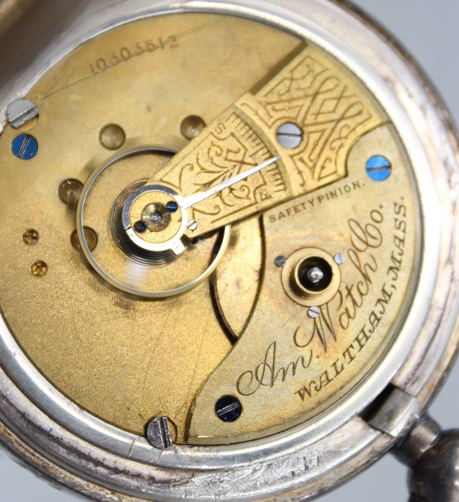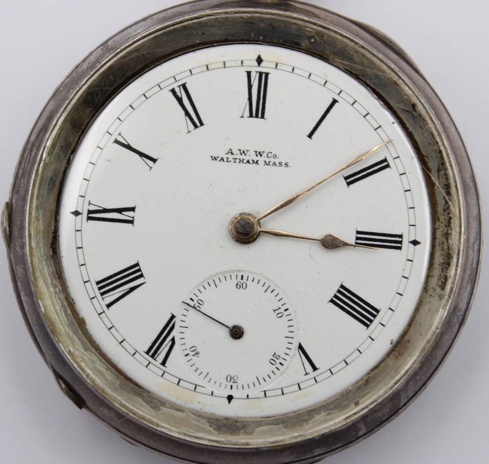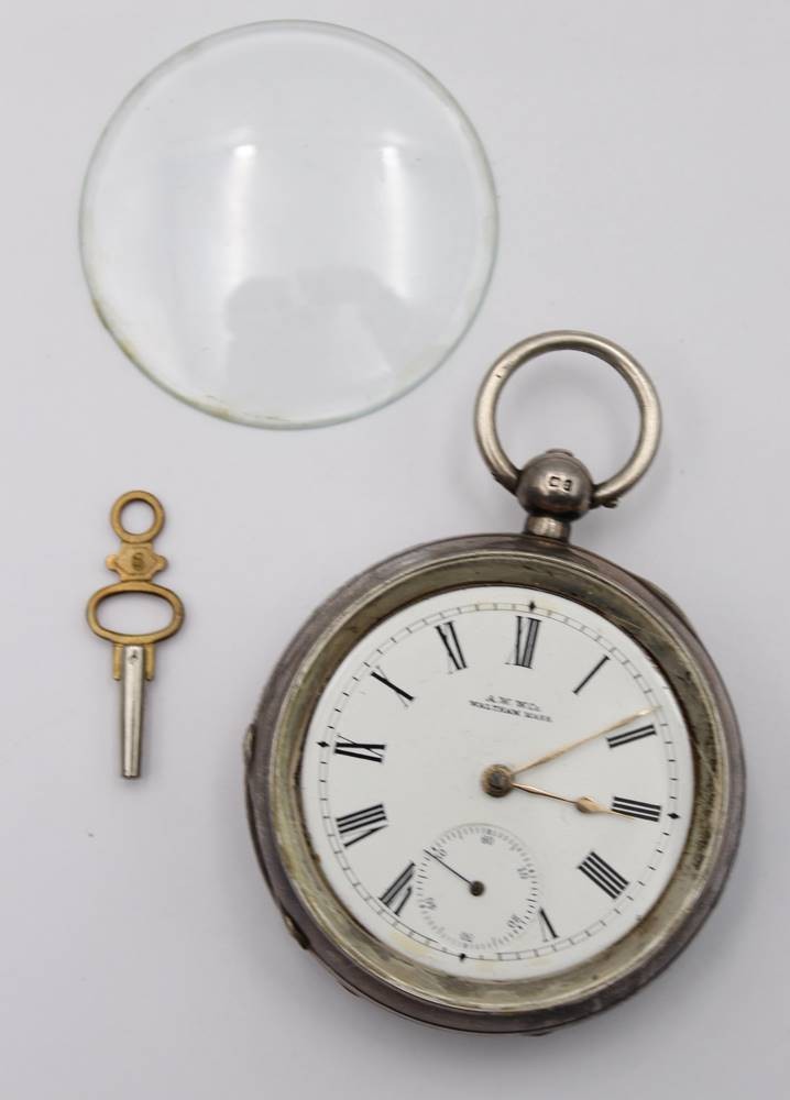 gr. Taschenuhr um 1900, Waltham, Silbergehäuse, Schlüsselwerk läuft, Glas lose, ca. D-5,7cm [1]