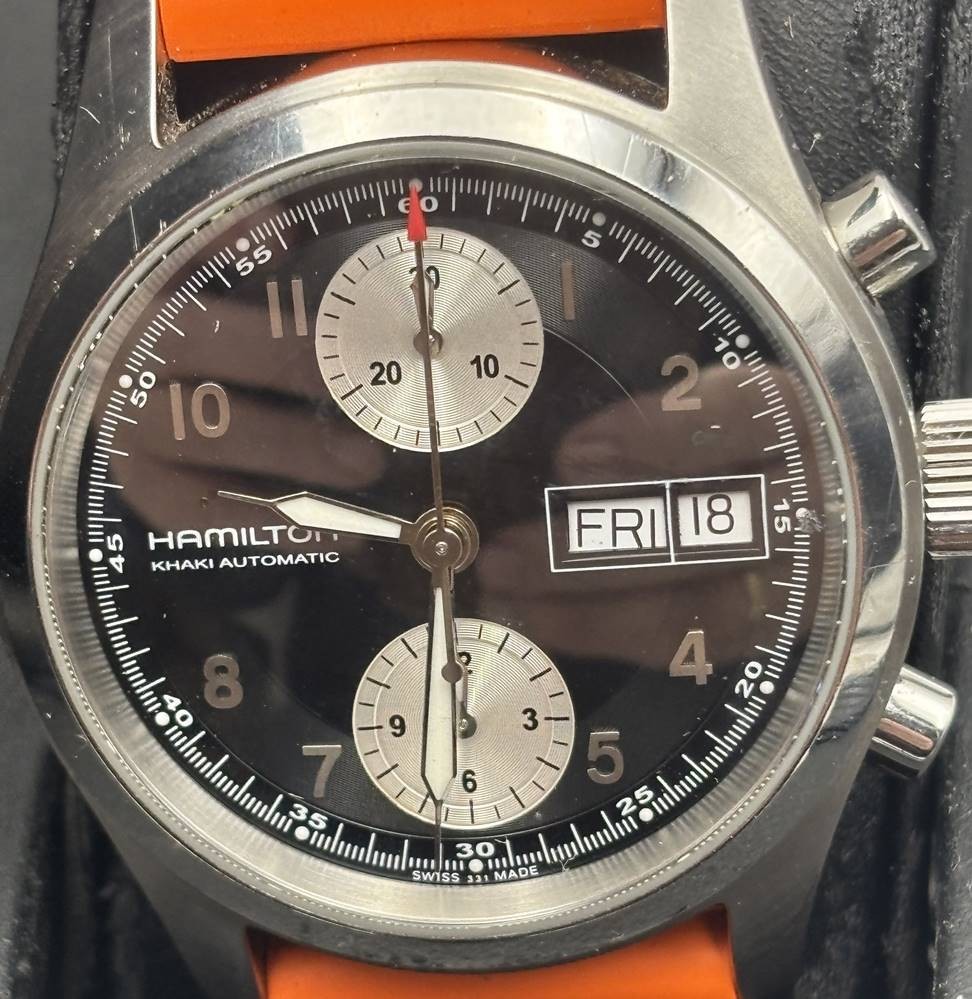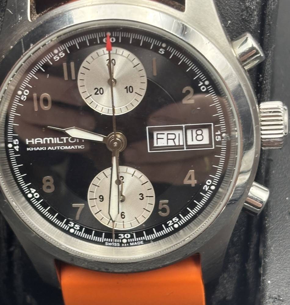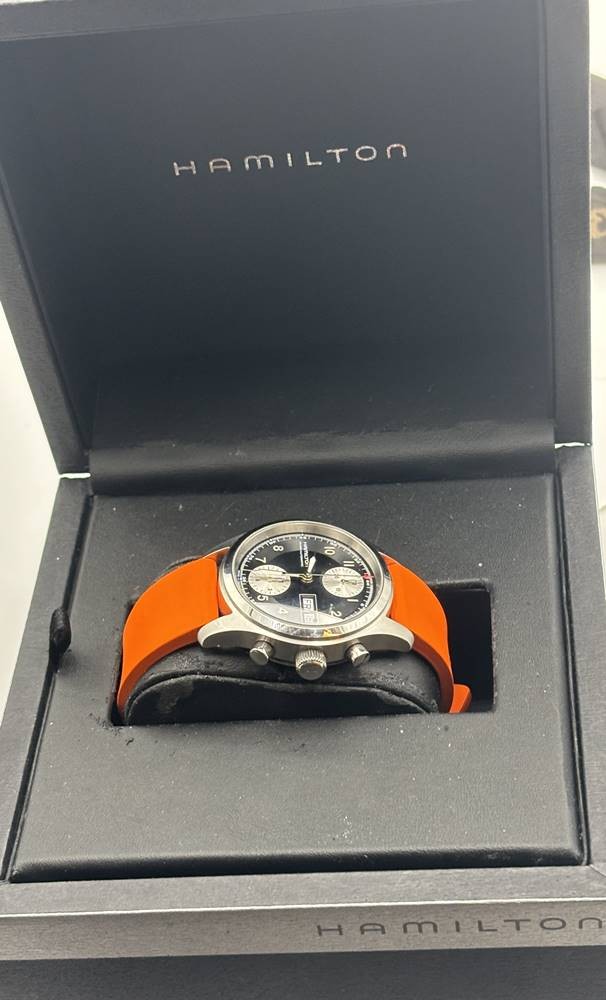 Hamilton Khaki Automatik HAU in orig. Kasten mit Umkarton, Ersatzarmband-und Glieder, Beschreibung und Kaufquittung von 2020 (880,--€) gut erhalten und läuft [1]