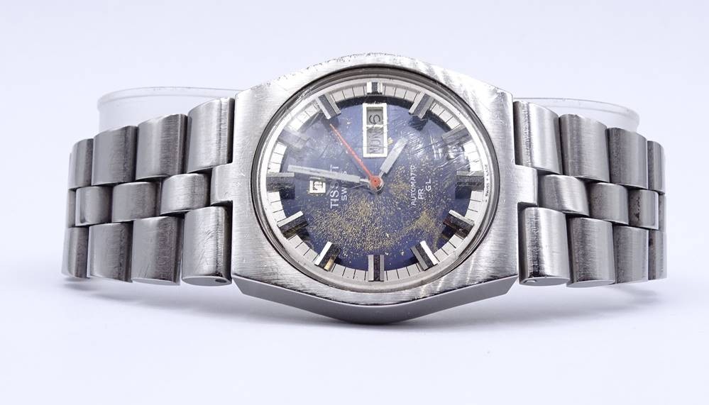 Herren Armbanduhr "Tissot", PR 516 GL, Automatikwerk, Werk läuft,Krone fehlt, Zifferblatt beschädigt, Glas zerkratzt, Gehäuse 36x36mm