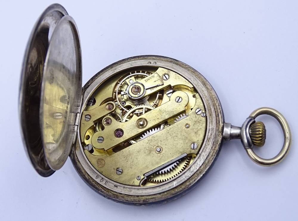 Herren Taschenuhr "Drusus", Silbergehäuse, Niello Technik, Glas fehlt [1]