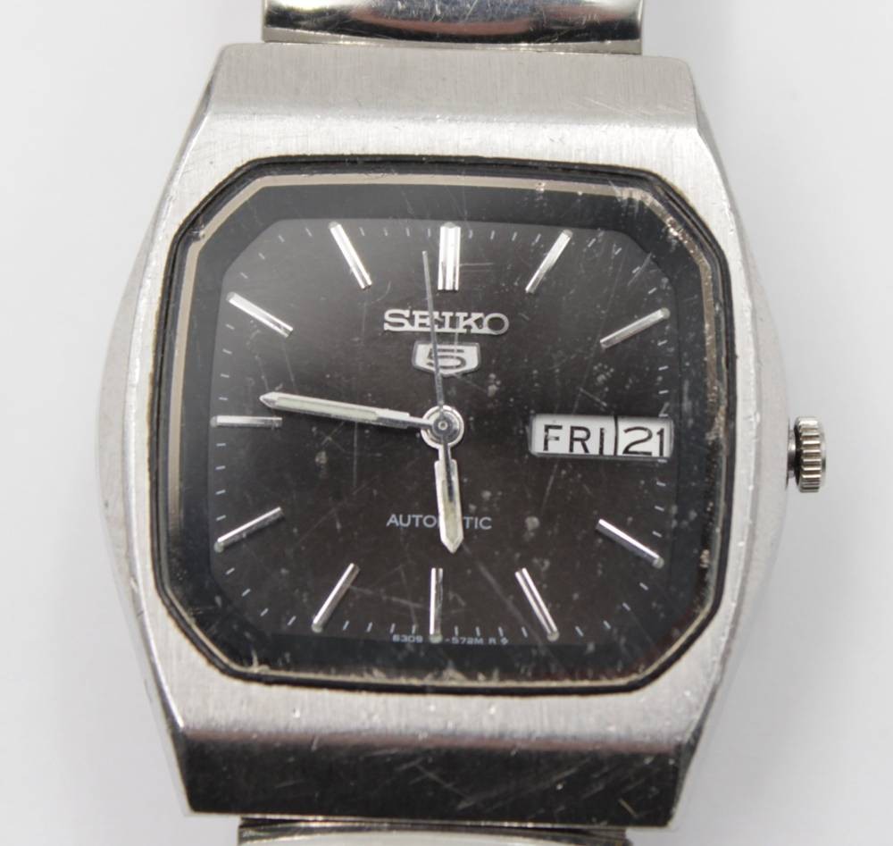 Herrenarmbanduhr, Seiko 5, Automatic, Werk läuft, Tragespuren, Zugband, ca. 3 x 3cm [1]