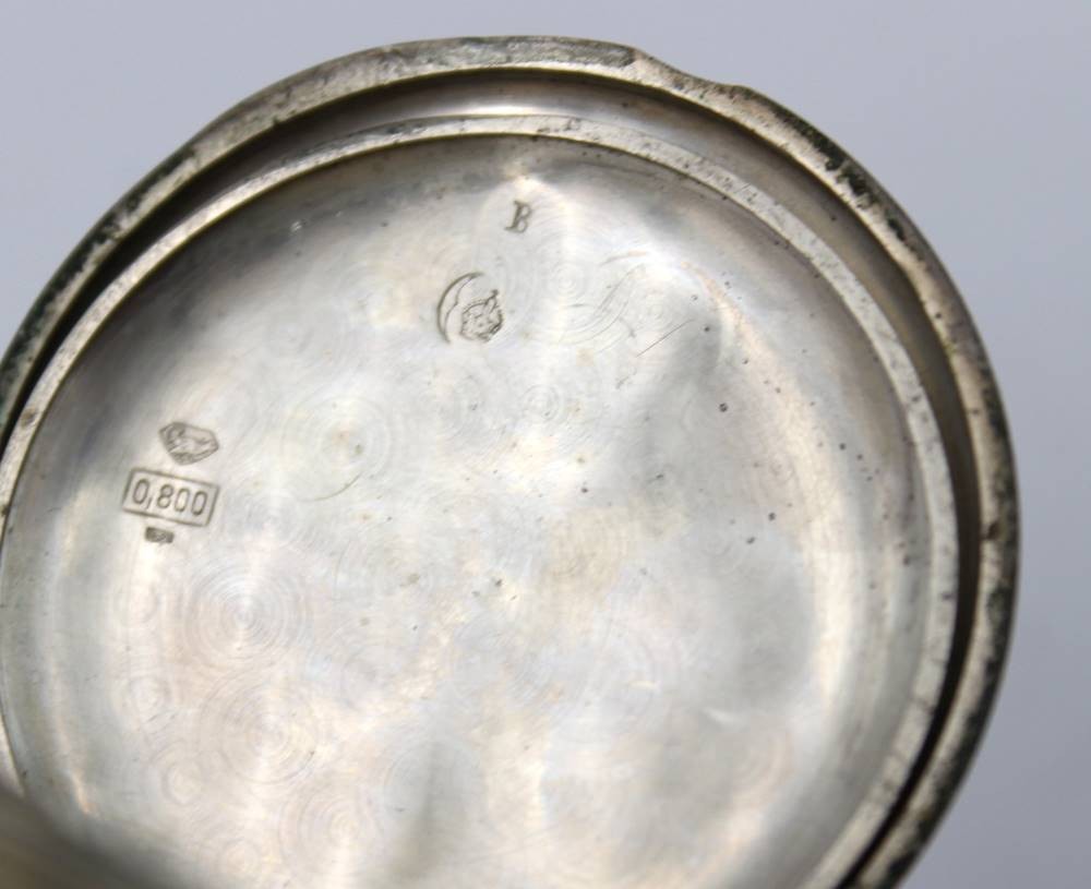 Herrentaschenuhr, 800er Silbergehäuse, Zenith, Kronenaufzug, Werk läuft an, Ziffernblatt altrissig, ca. D-4,8cm