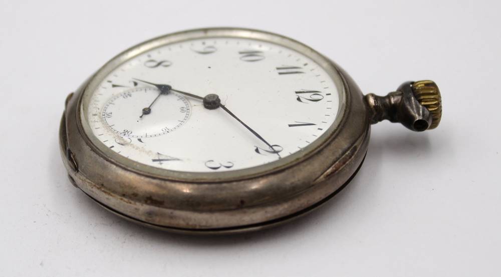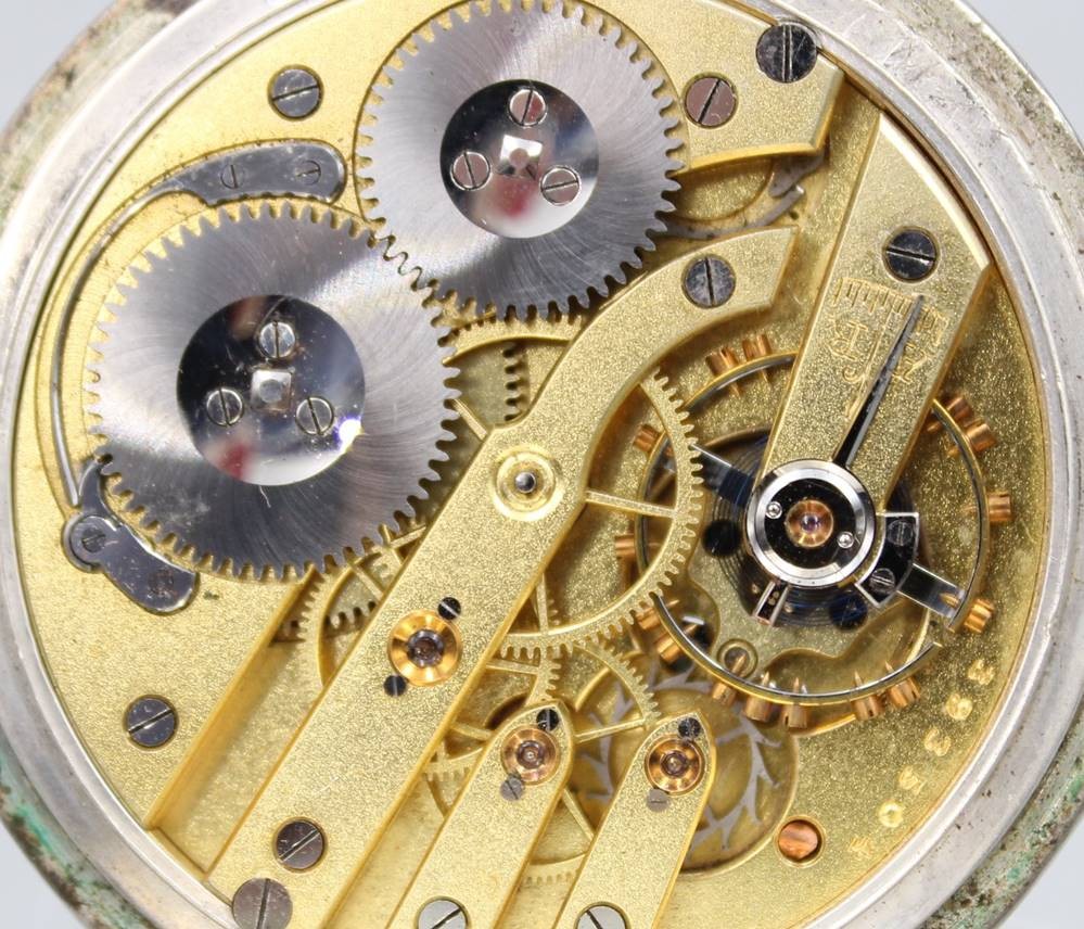 Herrentaschenuhr, 900er Silbergehäuse, I.W.C., Kronenaufzug, Werk steht, Ring fehlt, ca. D-5,1cm [1]