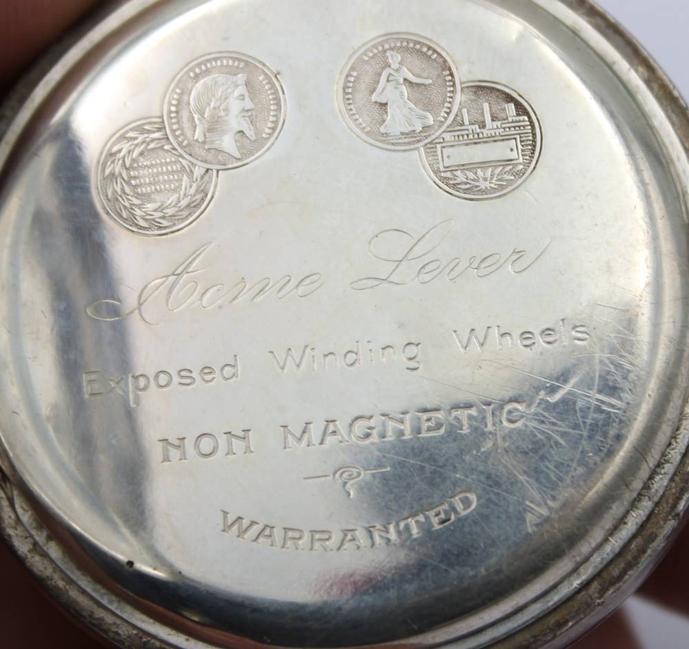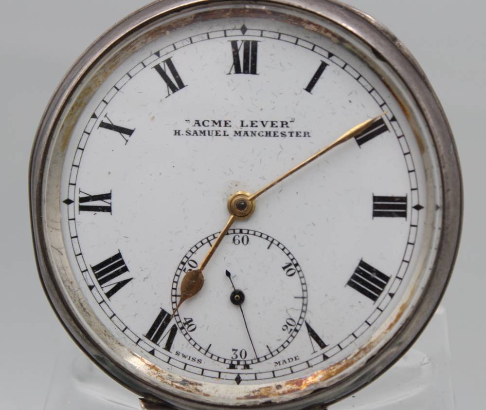Herrentaschenuhr, Acme Lever H. Samuel Manchester, 925er Silbergehäuse, Kronenaufzug, Werk läuft an, D-5cm [1]