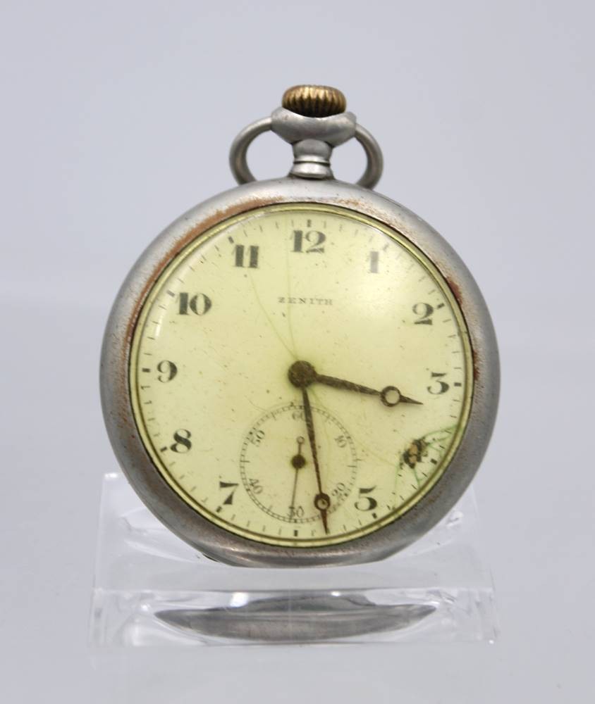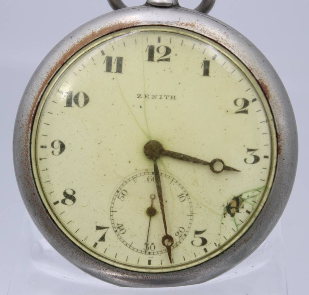 Herrentaschenuhr, Metallgehäuse, Zenith, Kronenaufzug, Werk steht, ca. D-4,9cm [1]