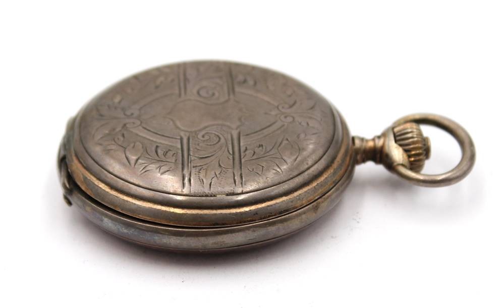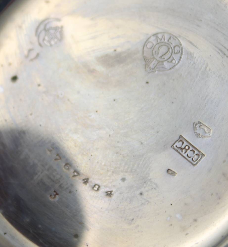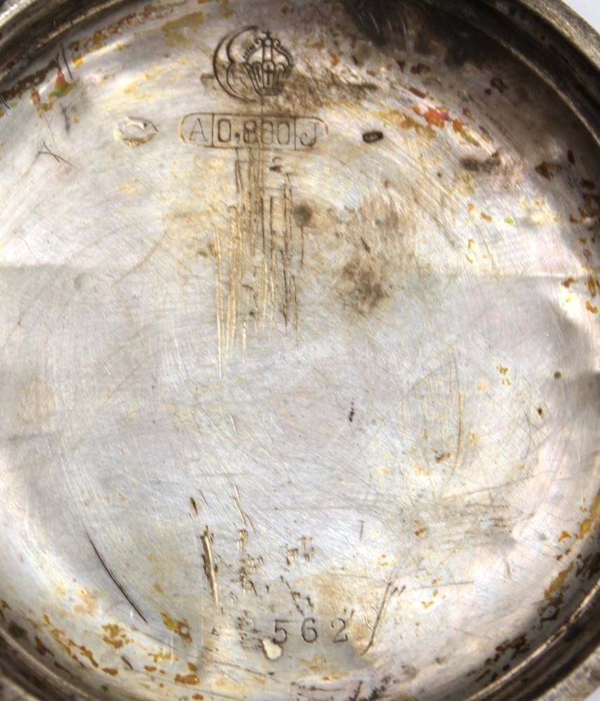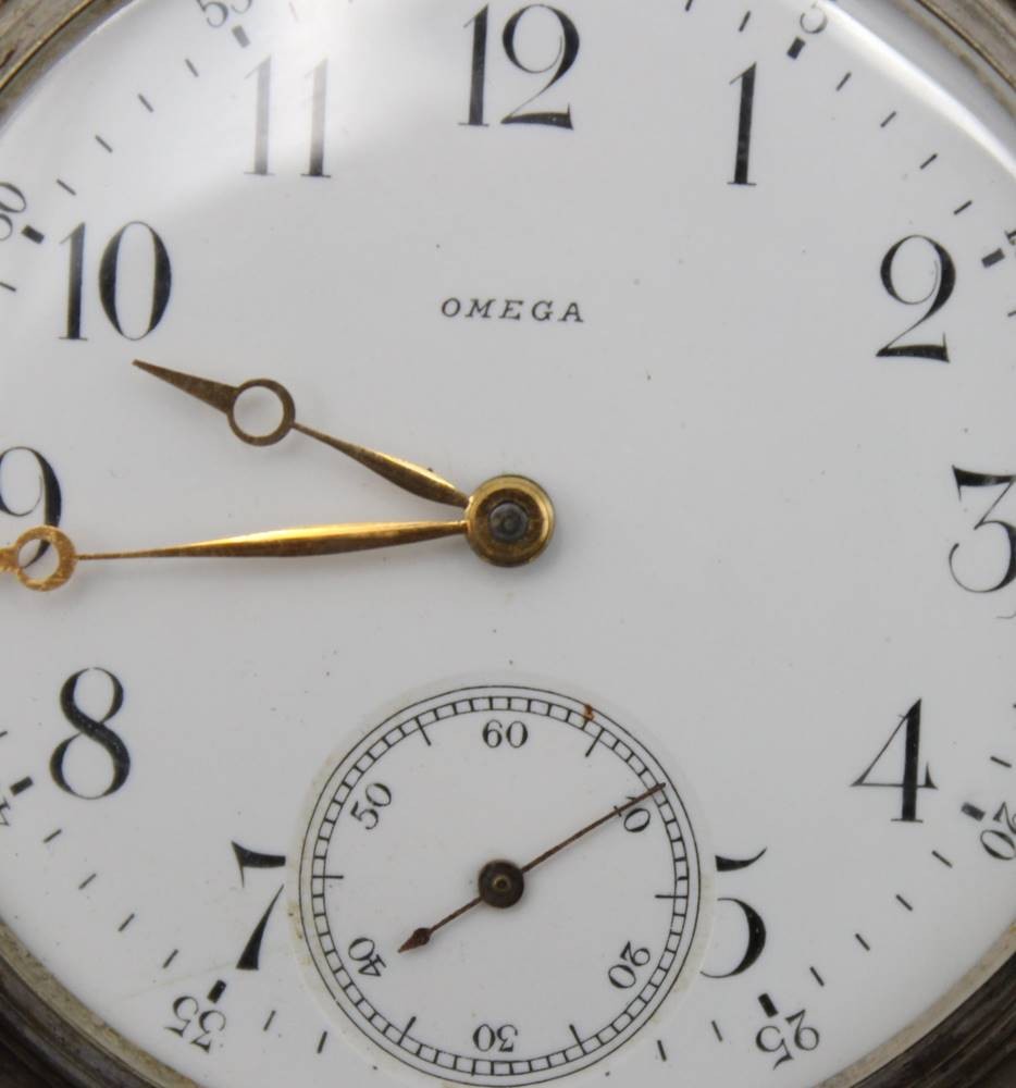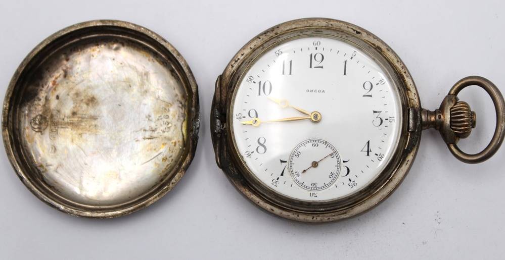 Herrentaschenuhr, OMEGA, 800er Silbergehäuse, Frontdeckel lose, Kronenaufzug, Werk läuft, Staubdeckel konnten wir nicht öffnen, ca. D-5,3cm [1]