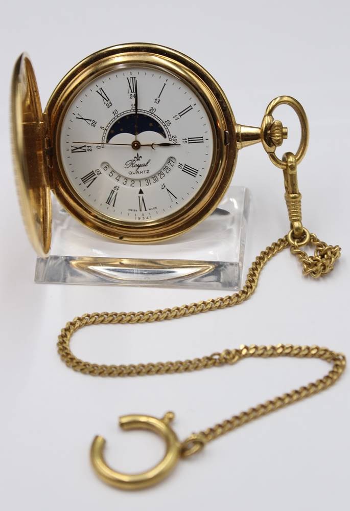Herrentaschenuhr, Royal Quartz, Mondphase, an Kette, Werk nicht geprüft, D-4,7cm [1]