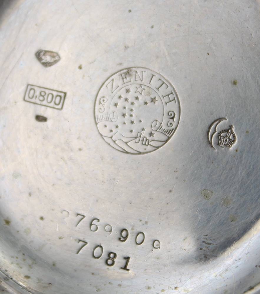 Herrentaschenuhr, Zenith, 800er Silbergehäuse, Kronenaufzug, Werk steht, D-5,2cm [1]