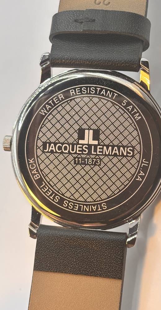 JACQUES LEMANS Herren Analog Quarz Uhr mit Leder Armband, D-4 cm, Modell 11-1873, neuwertig, nicht geprüft [1]