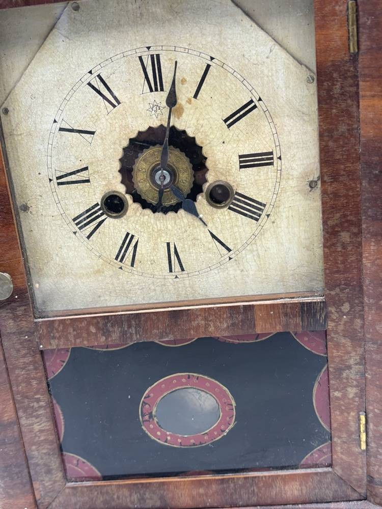 Kaminuhr "Junghans" in Holzgehäuse, Werk läuft an, H-34 cm, B-25 cm [1]
