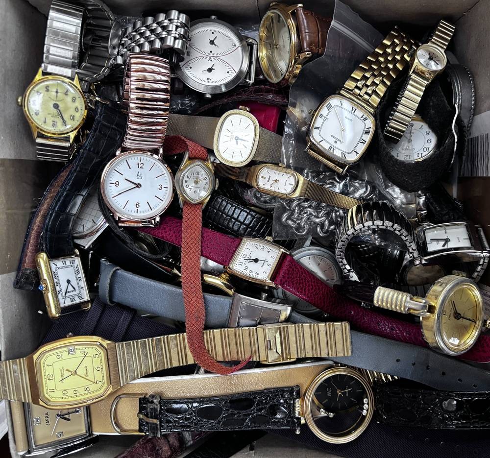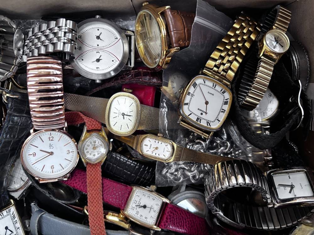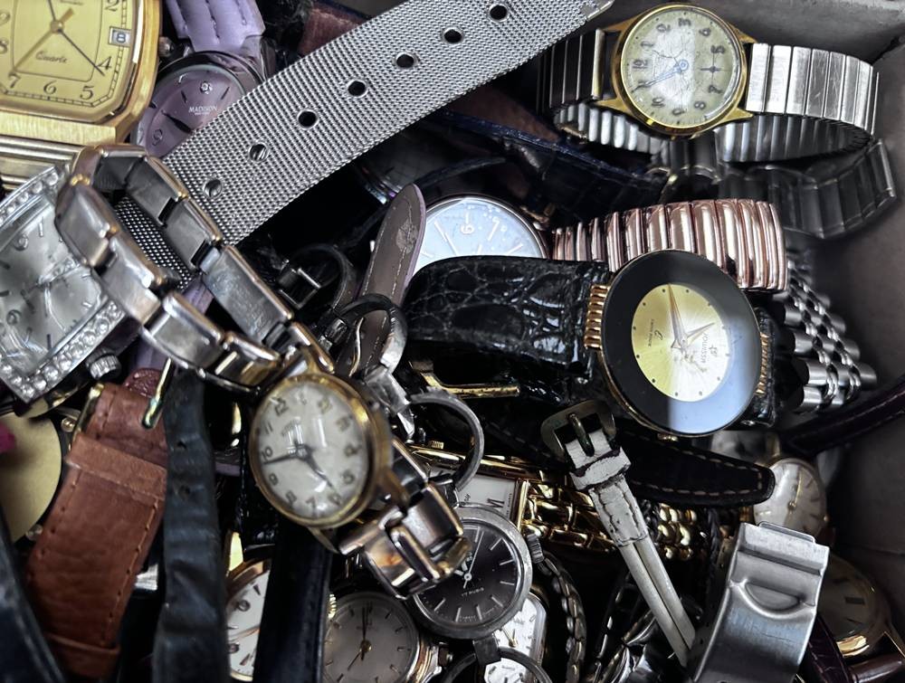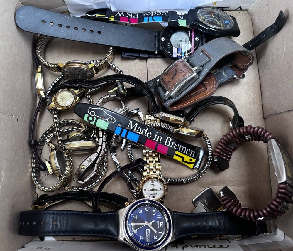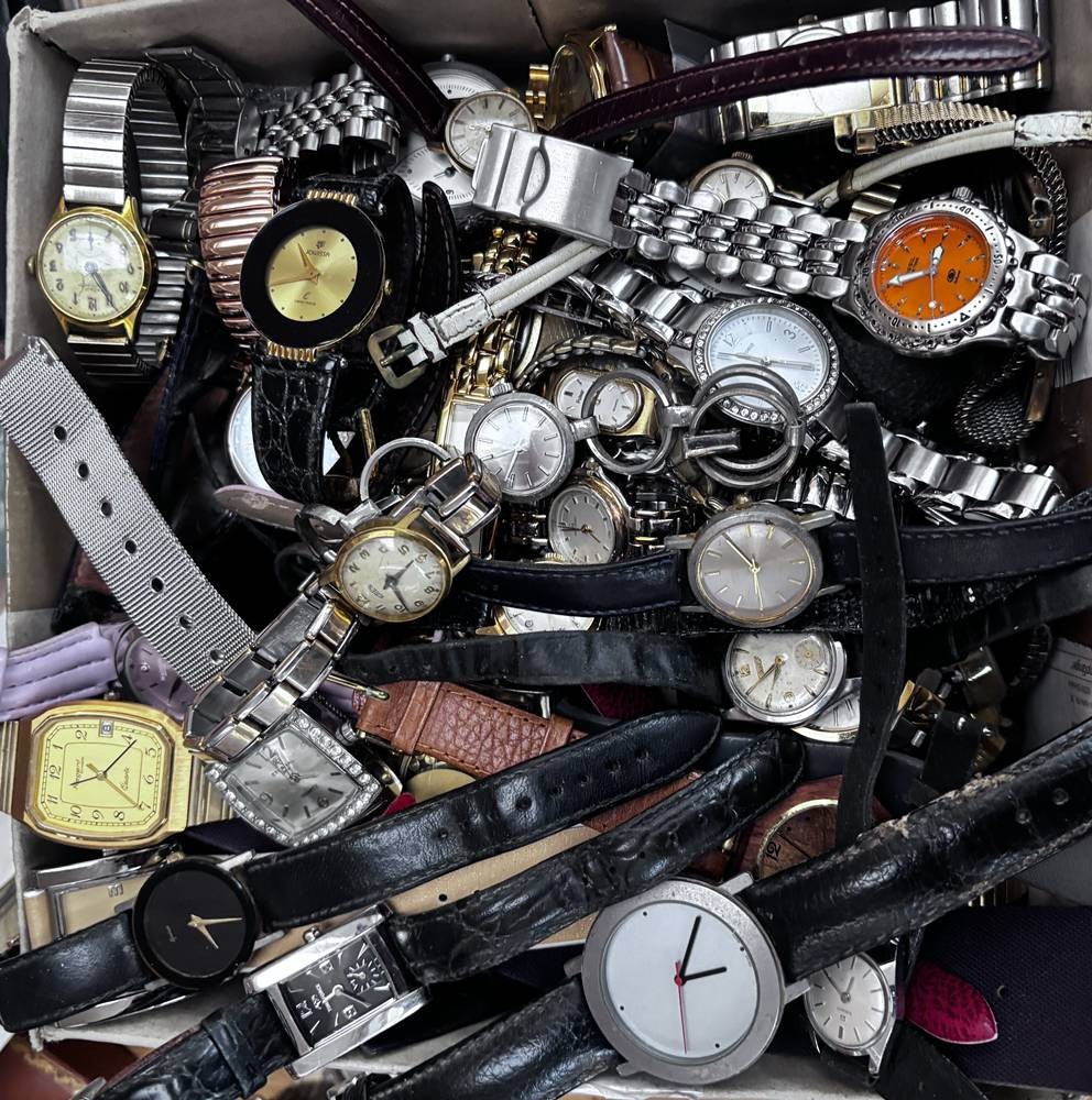 Karton voller Damenuhren, Quartz und mechanisch, auch Dugena, Seiko, Fossil etc. Nicht überprüft, ca. 50 Teile [1]