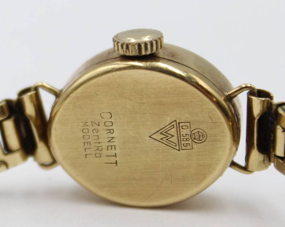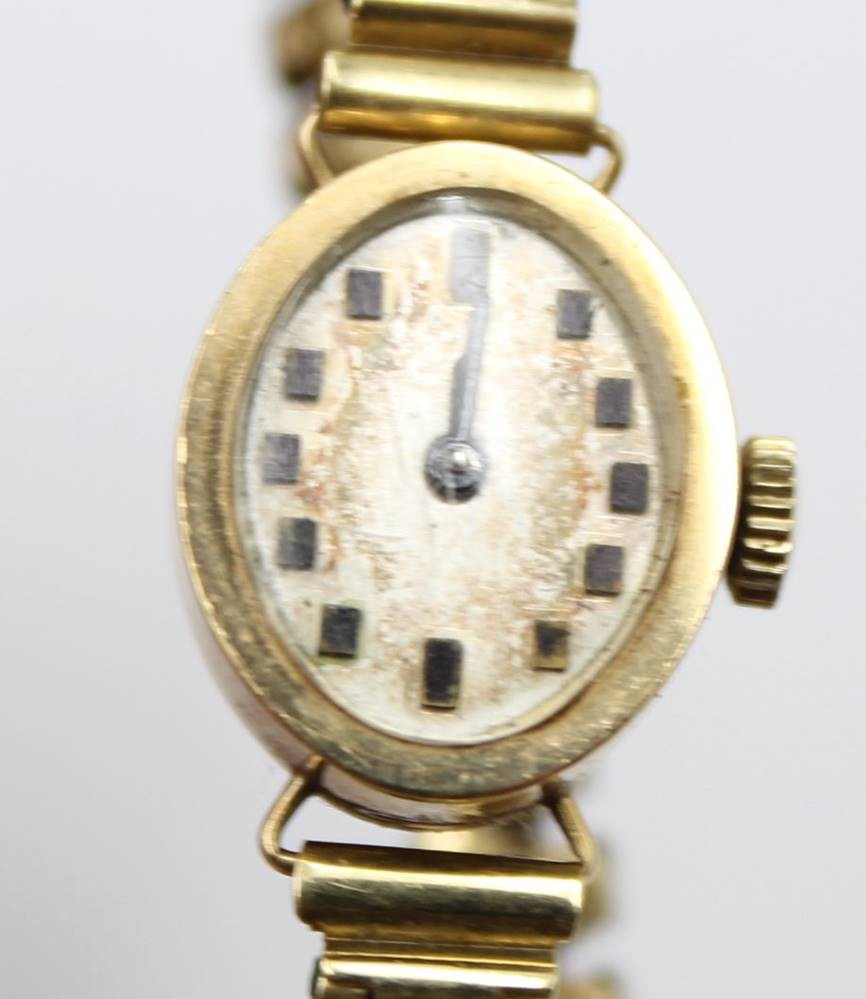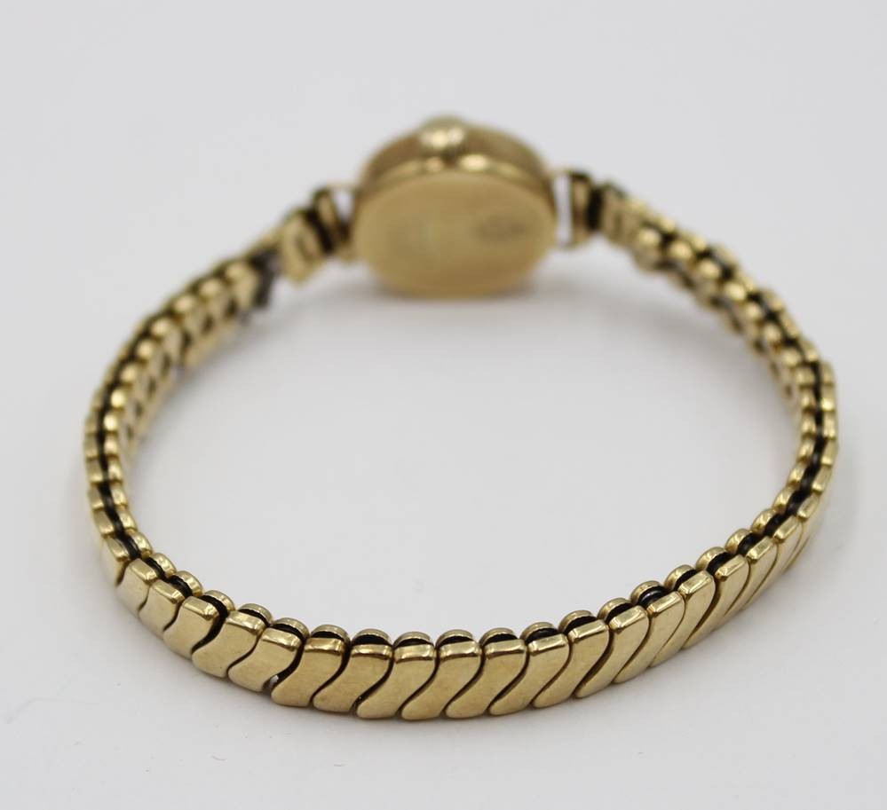 kl. Damen-Armbanduhr, 585er GG Gehäuse, Flexarmband, Werk steht, ca. 1,7 x 1,4cm [1]