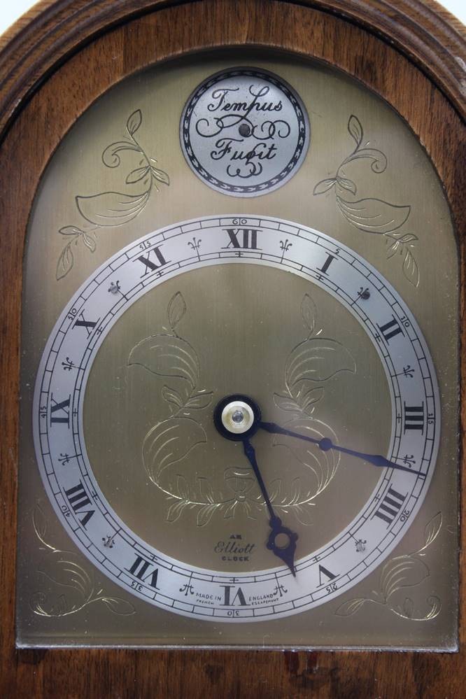 kl. Kaminuhr "Elliot clock" England, mechan. Werk läuft, H-mit Griff ca. 20 cm, B-15 cm [1]