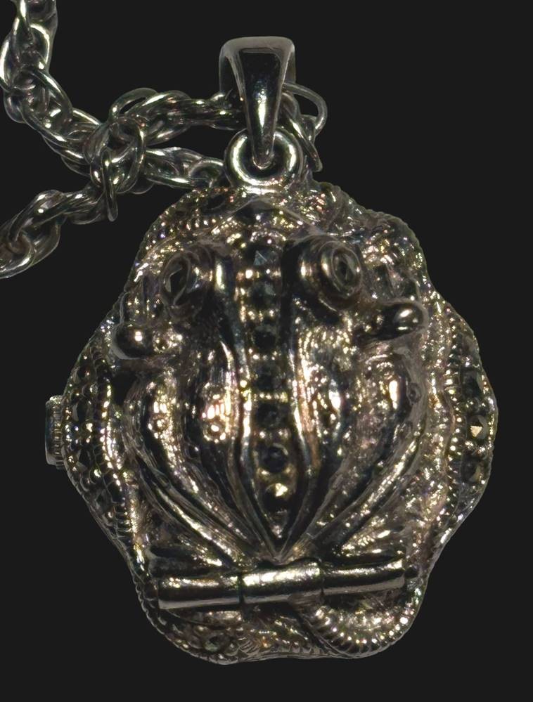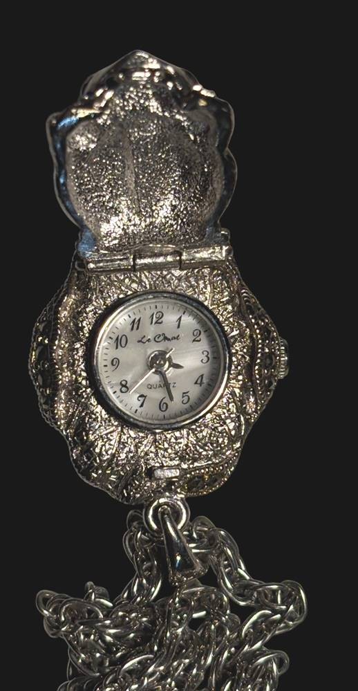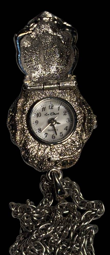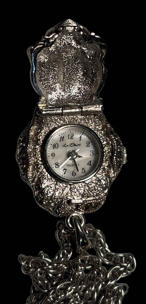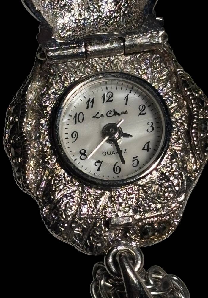 kl. Quartz Damen-Umhängeuhr "Le Chat" an langer Kette, mit Klappdeckel, Werk nicht geprüft [1]