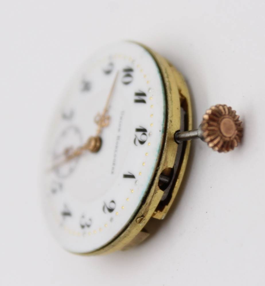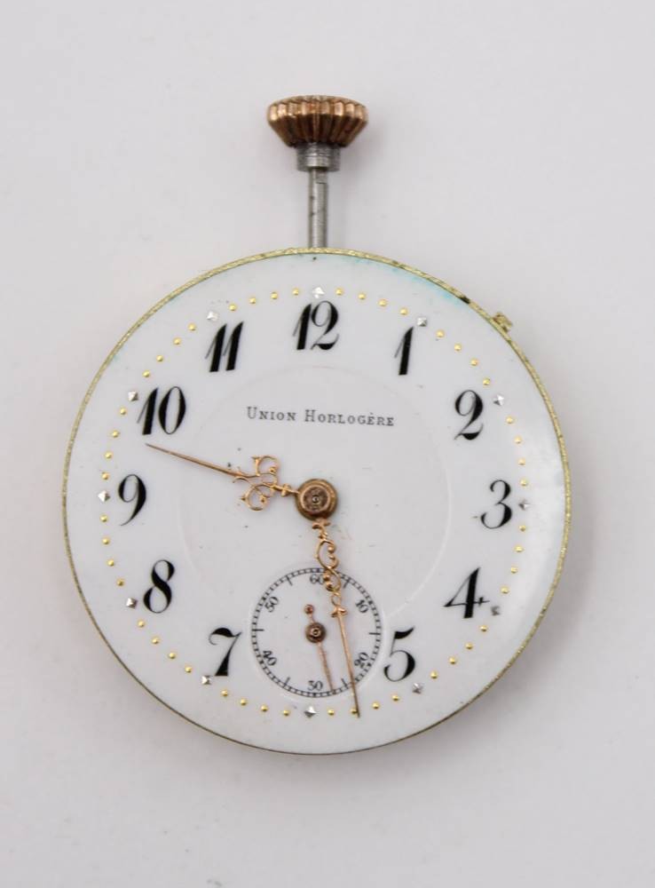 kl. Taschenuhrwerk, Union Horlogére, älter, Kronenaufzug, Werk steht, ca. D-2,7cm [1]