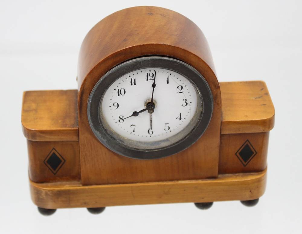 kl. Tischuhr um 1900, leider Werk defekt, Glas fehlt, ca. H-9cm B-11cm [1]