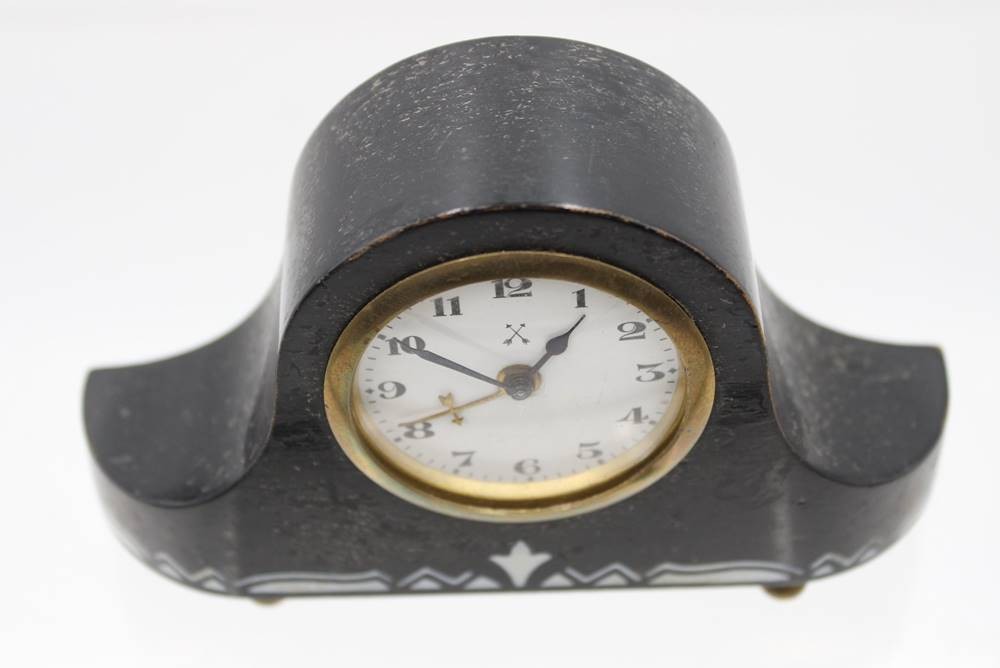 kl. Tischwecker um 1920, Werk läuft, Weckfunktion scheint defekt, ca. H-7,5cm B-12cm [1]